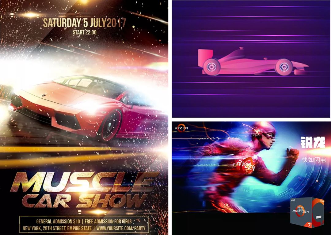 加上错开的线条、模糊的背景之后,瞬间就有了强烈的速度感: