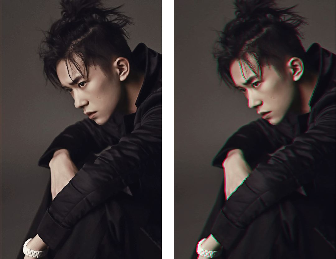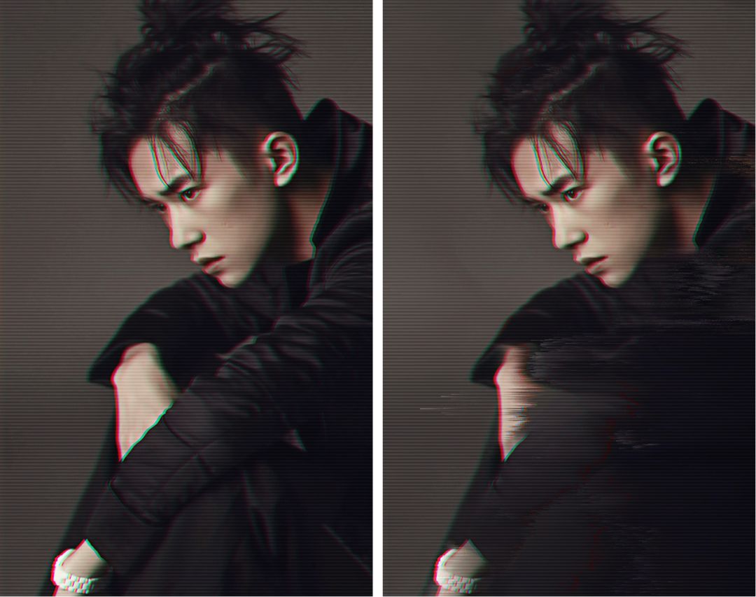 首先在网上找一张易洋千玺小哥哥的帅照,然后做出重影的效果: