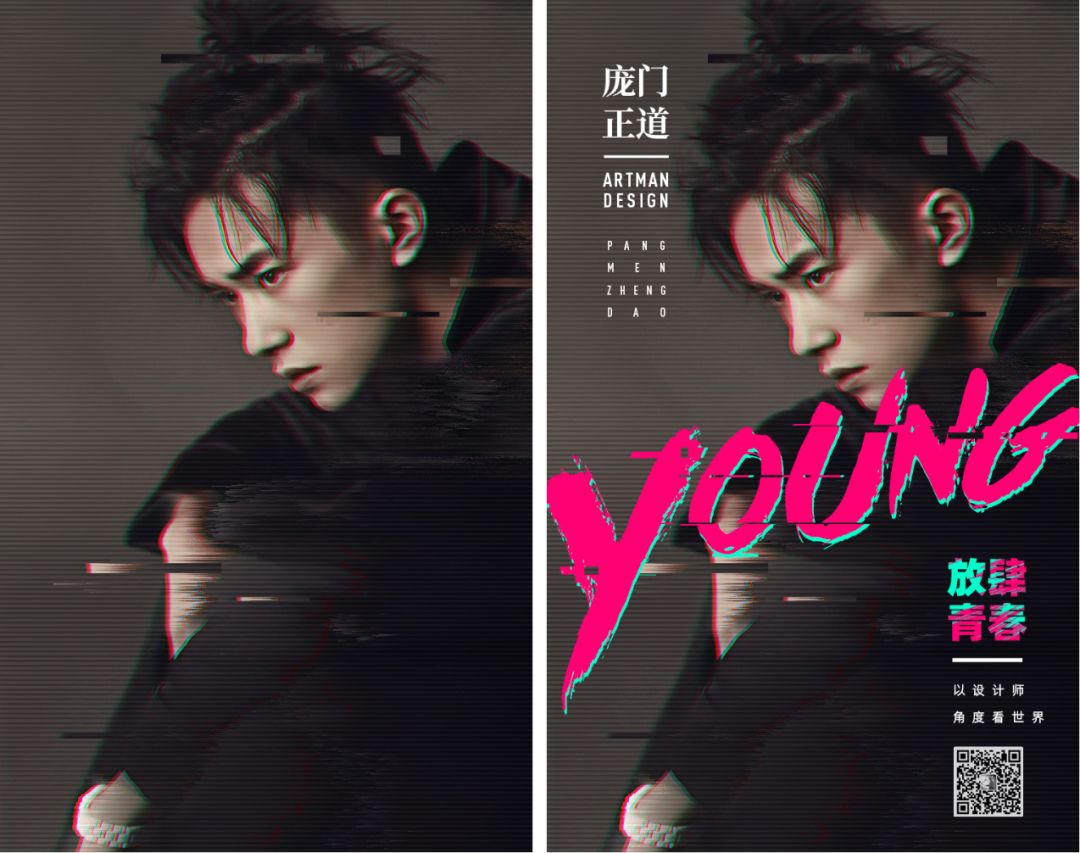 现在很流行的故障艺术风格,大量错位的线条,使得画面很有动感。