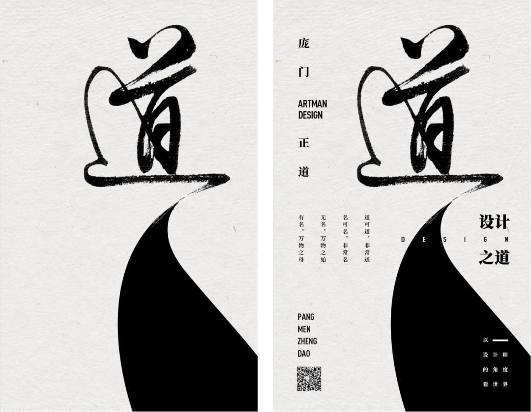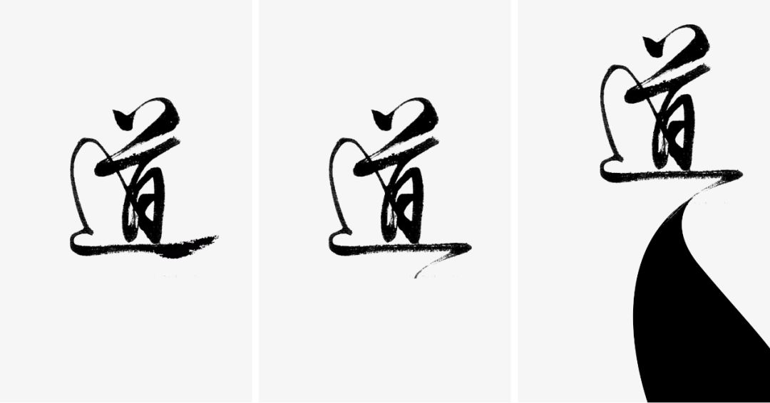 首先找一个在线条上比较流畅的“道”字,然后对局部进行改造,将道字的最后一笔与弧形相结合,形成一种缓缓流淌开的视觉效果。