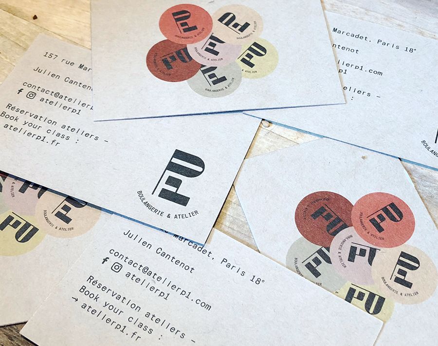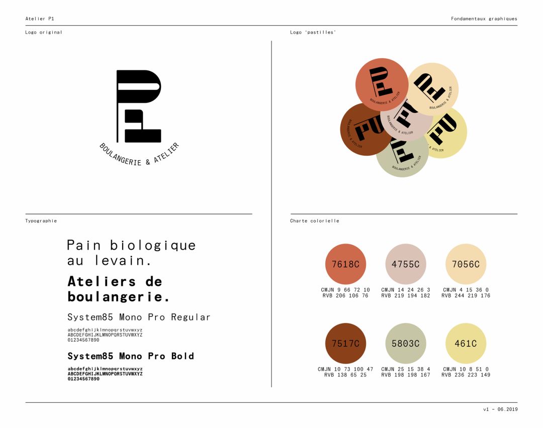 创始人委托 Brand Brothers 设计P1的视觉识别。Brand Brothers 的回应是基于一个建筑会标,有非常鲜明的线条以及一些自然的彩色点。适当的图形设计,如标点符号,表达了指导这种新型面包店的心态。