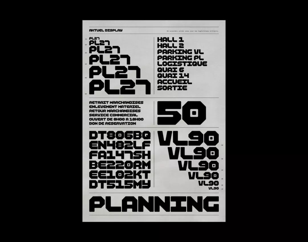 当字体和图形组合在一起时,标识形象就形成了,这也可以被理解为一个隐喻,用于整合 Aktuel 的专业知识(通过字体)和Aktuel的库存(通过图形),以找到家具、餐具和功能的完美平衡。