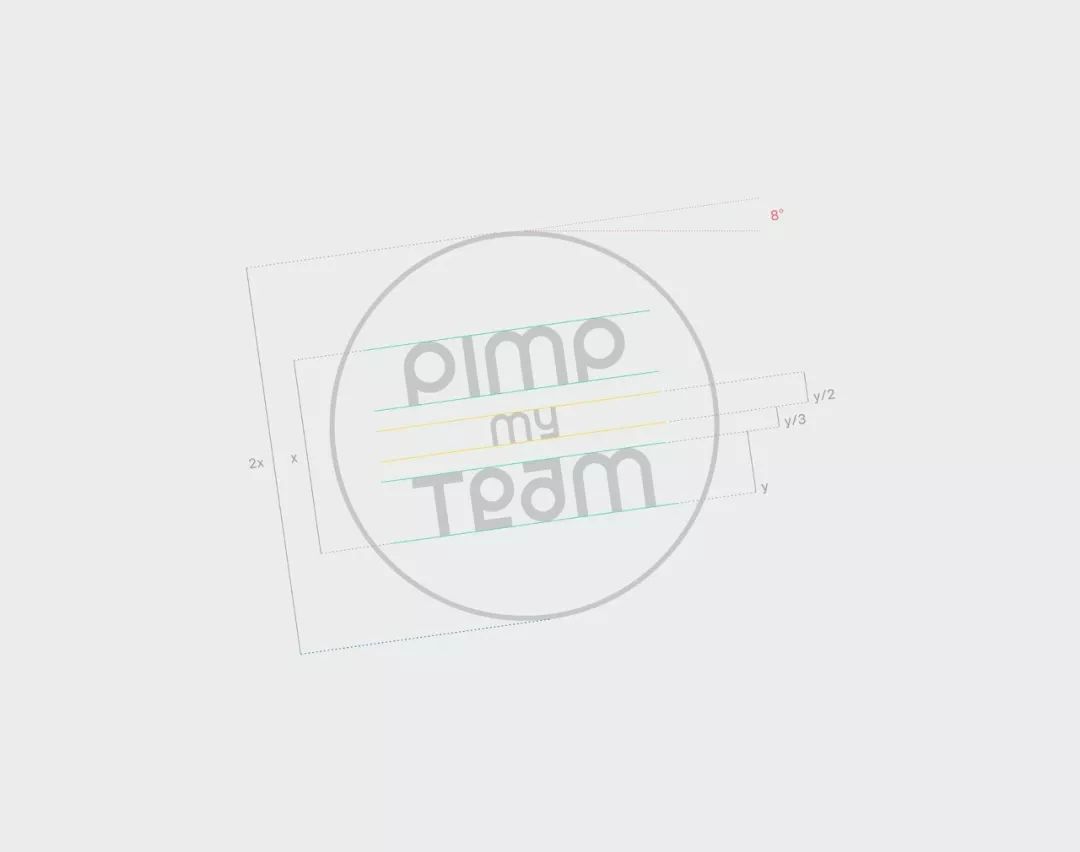 新的 Pimp My Team 标识是一个原始的,色彩鲜艳的大胆图形。它清晰,快乐和严谨。设计师意想不到的打破了标志设计的惯例,和谐地融合了直角和舒缓的曲线。