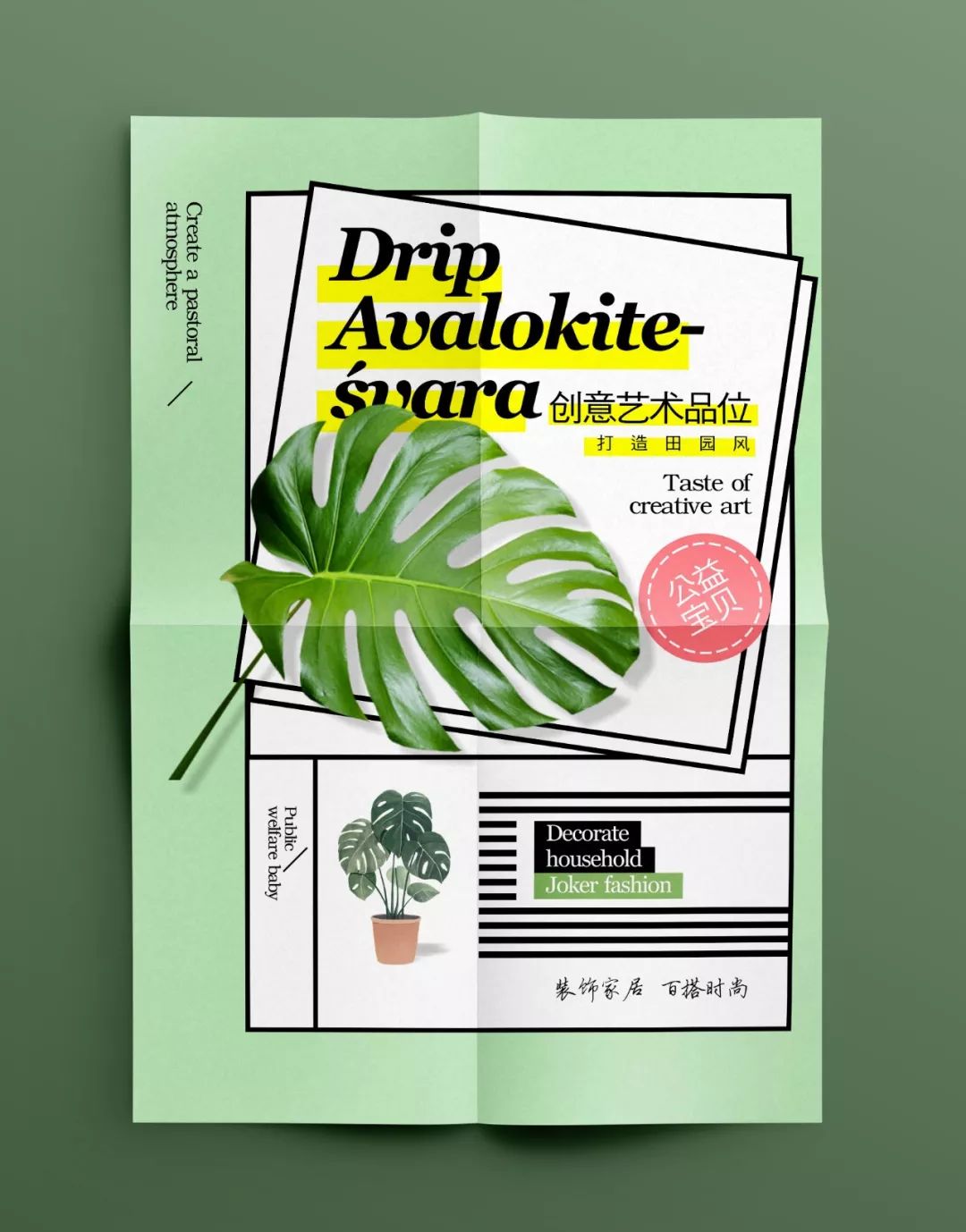 举一反三,根据上面的版式布局继续演变,替换成新的文案信息。主体置换成滴水观音,画面延续上面的版式布局,