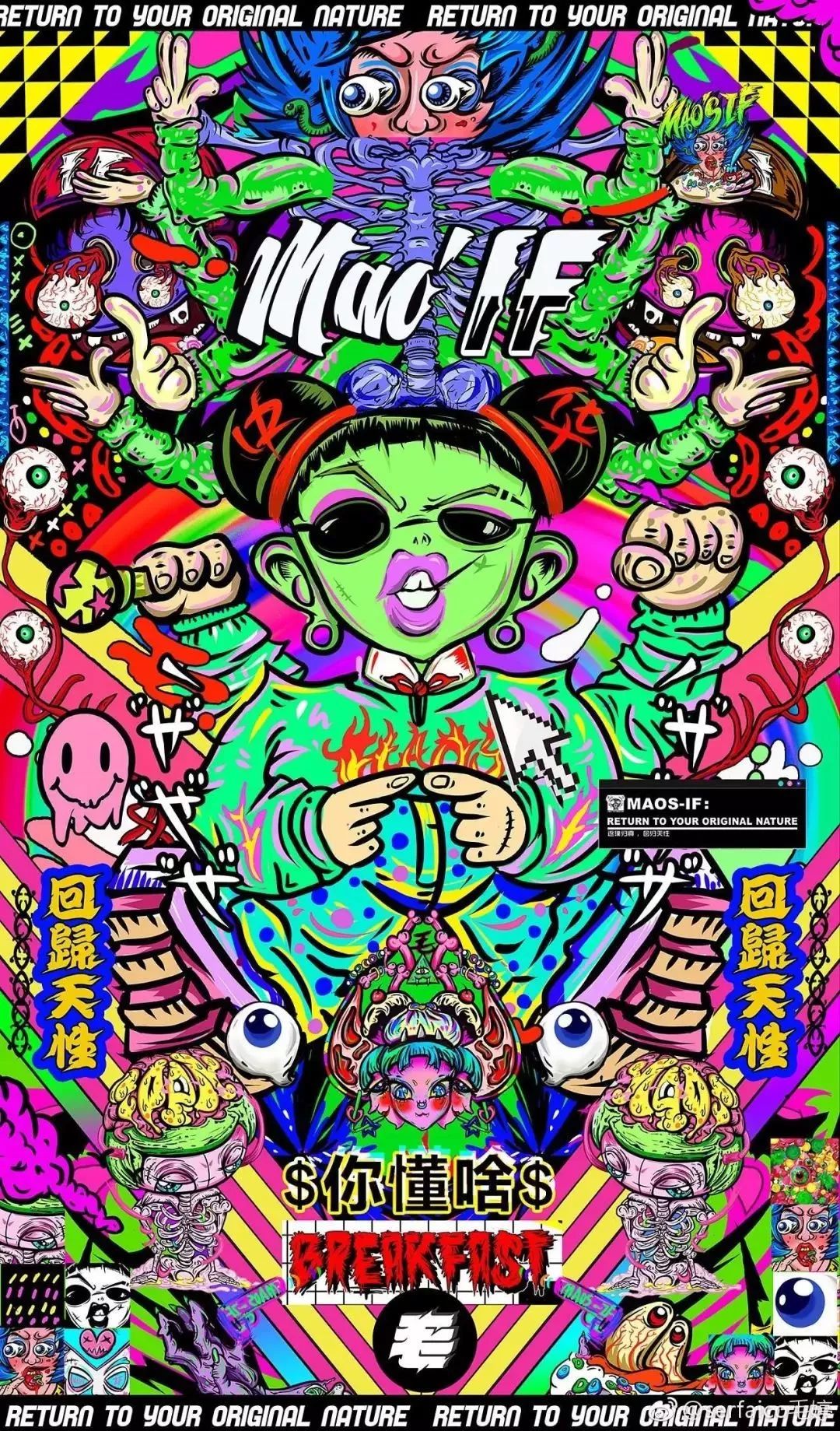 毛婷的作品,用色大胆,风格突出、百变、多元化、善于创新媒介。以其丰富刺激的、独有的配色风格成为标志性的特点;既有天马行空的童心,又有深刻思考的意识,视觉冲击力力强,突破创意且风格百变。