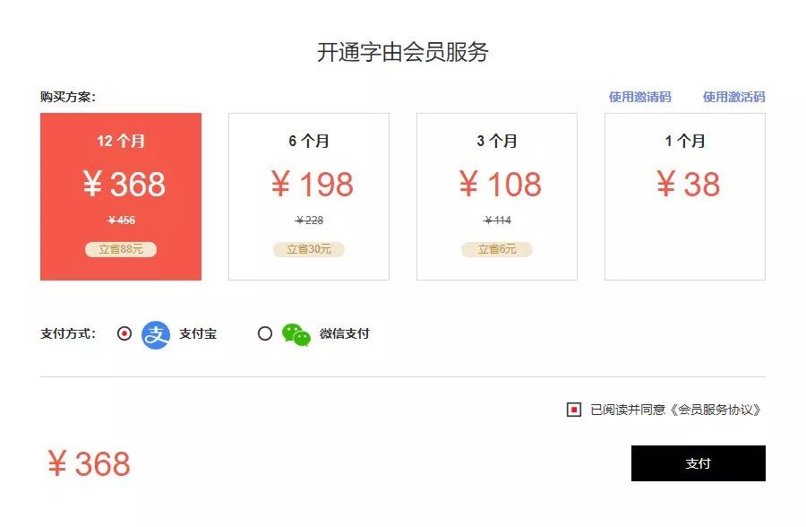 点红色的购买会员服务,你会看到醒目的368元,没错,这就是激活码的价值,选右上角的使用激活码~
