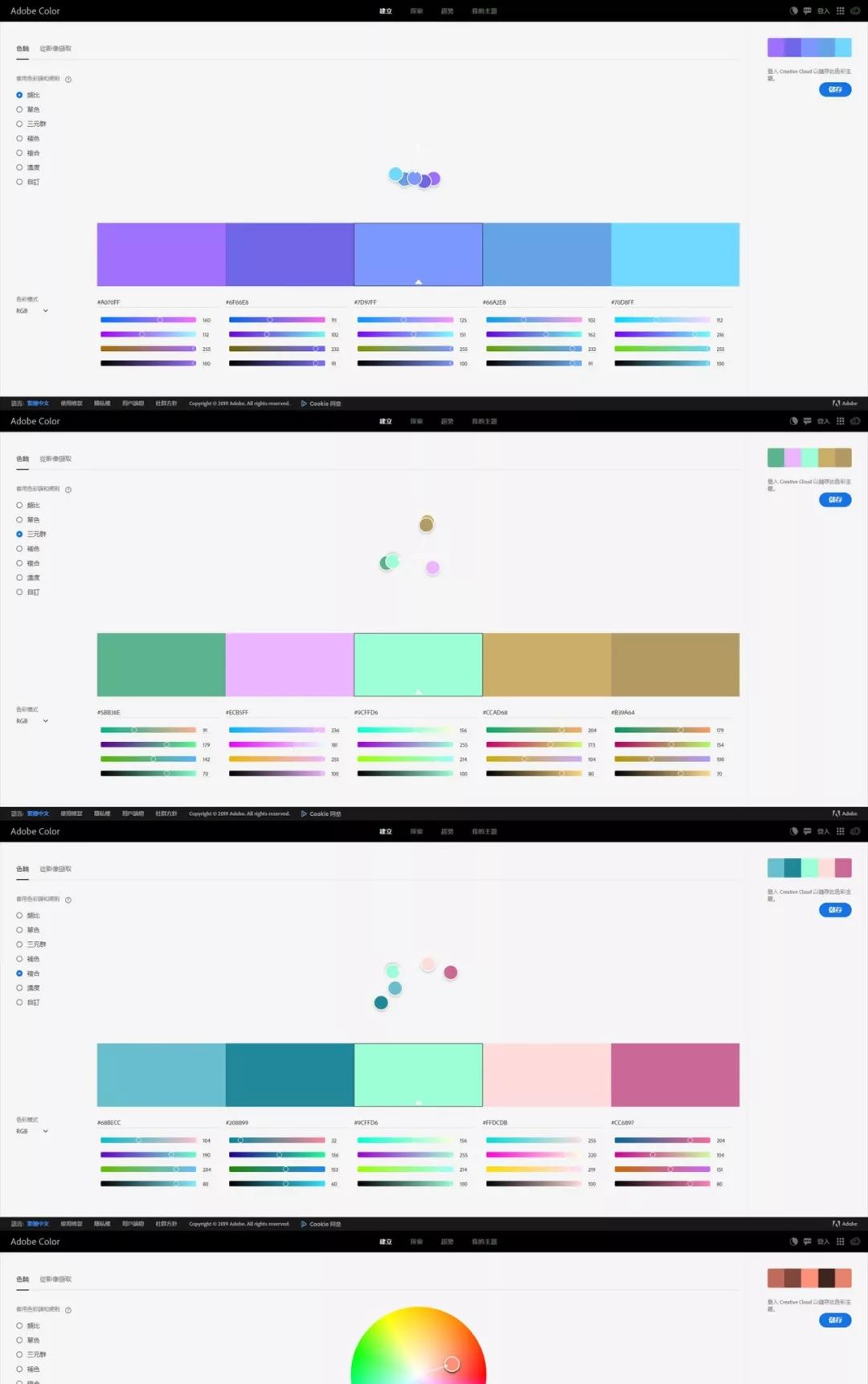 创建并保存各种颜色方案,每种颜色方案由一组五种颜色组成。