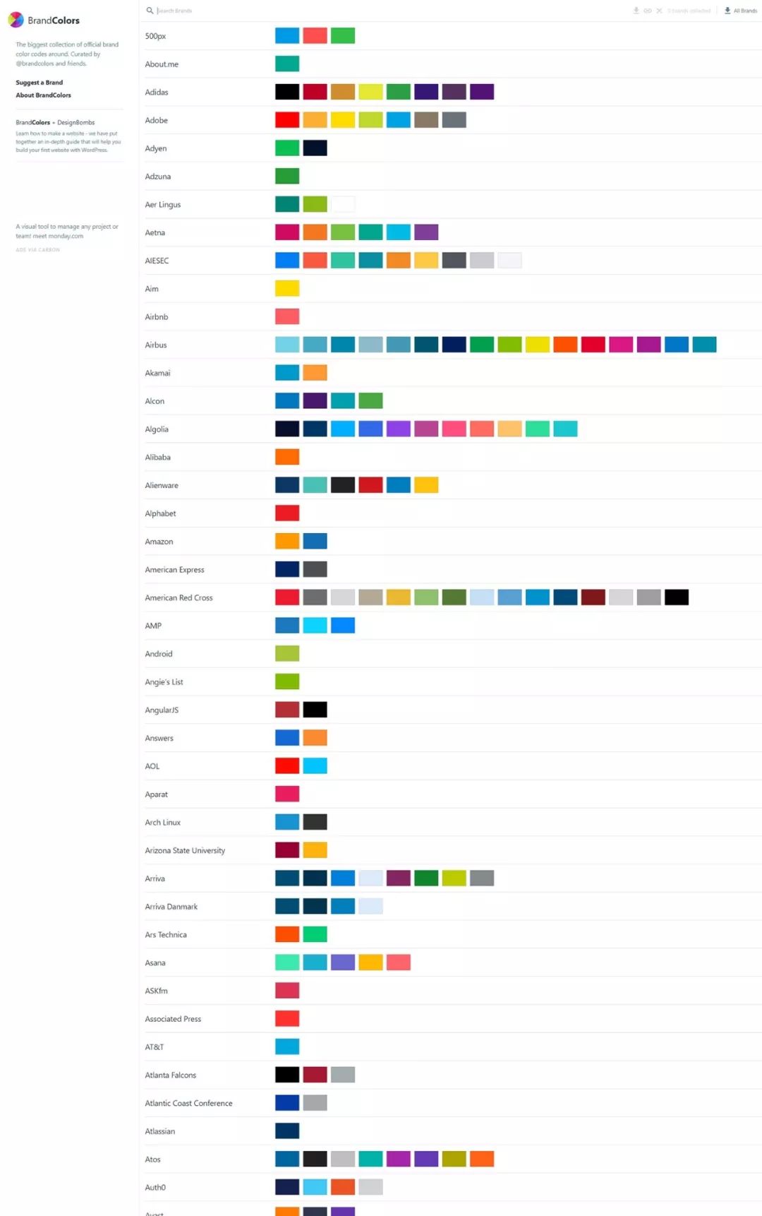 最大的官方品牌颜色代码集合。包括500多个品牌的十六进制颜色代码,包括Facebook,Twitter,Instagram等等。