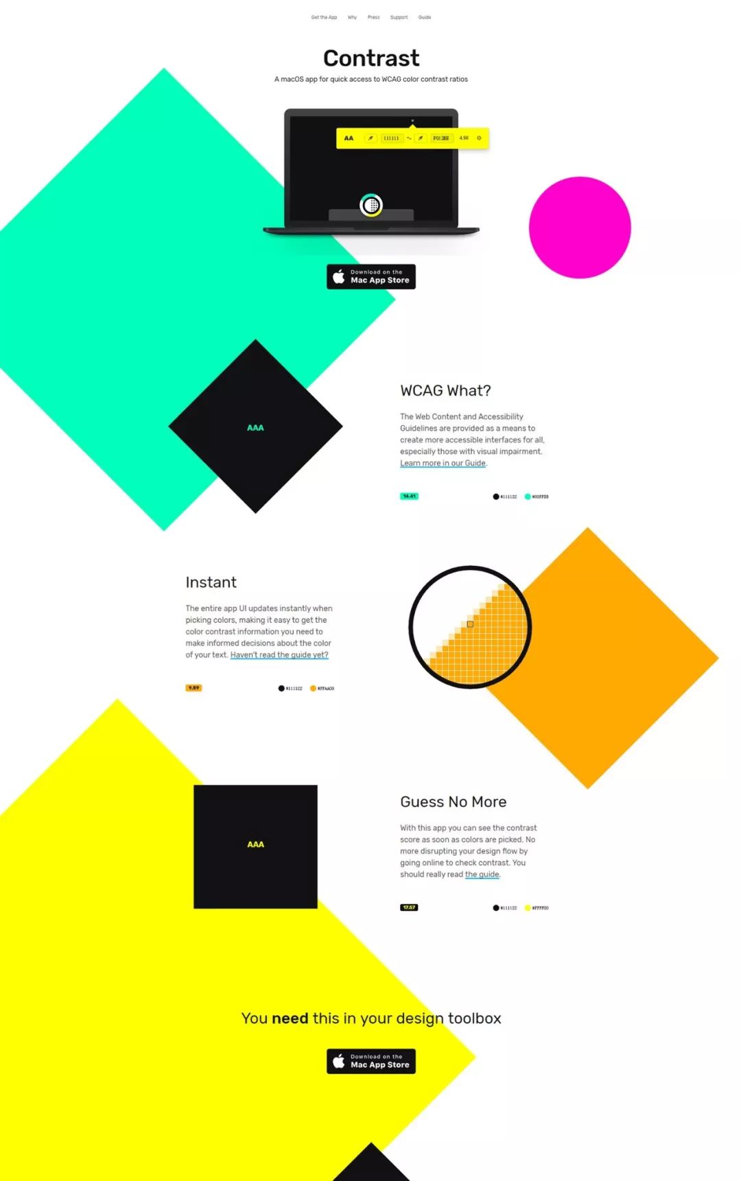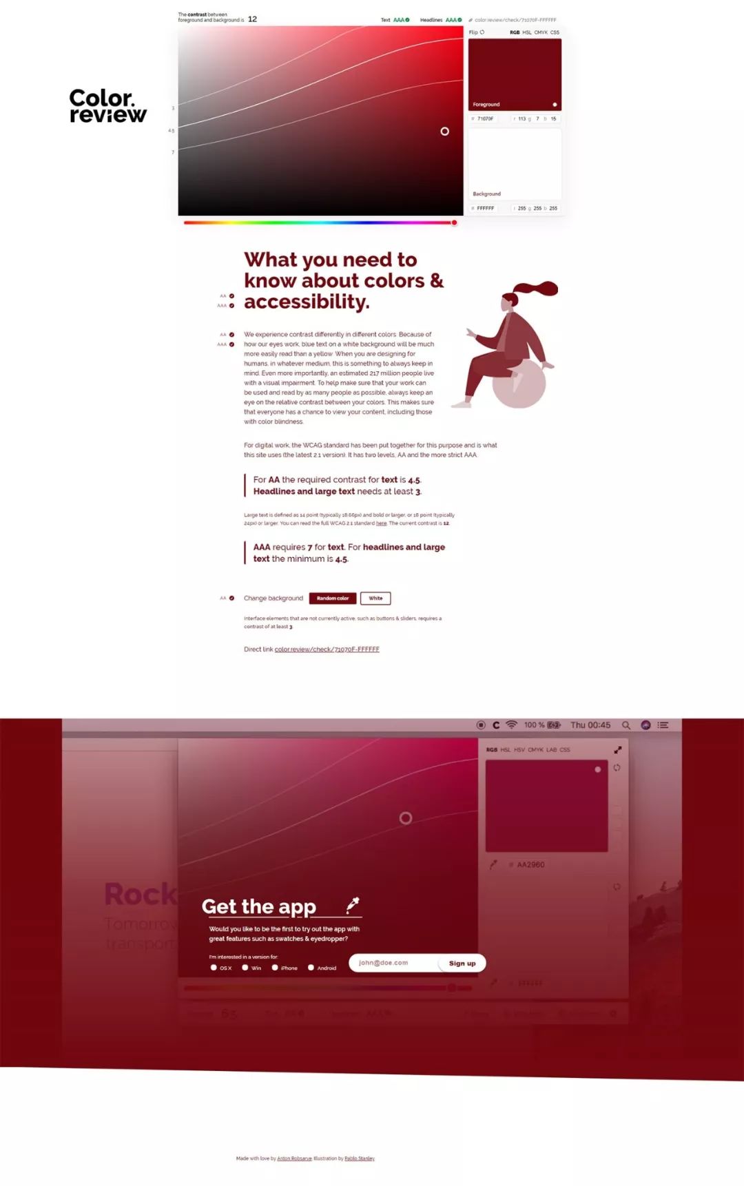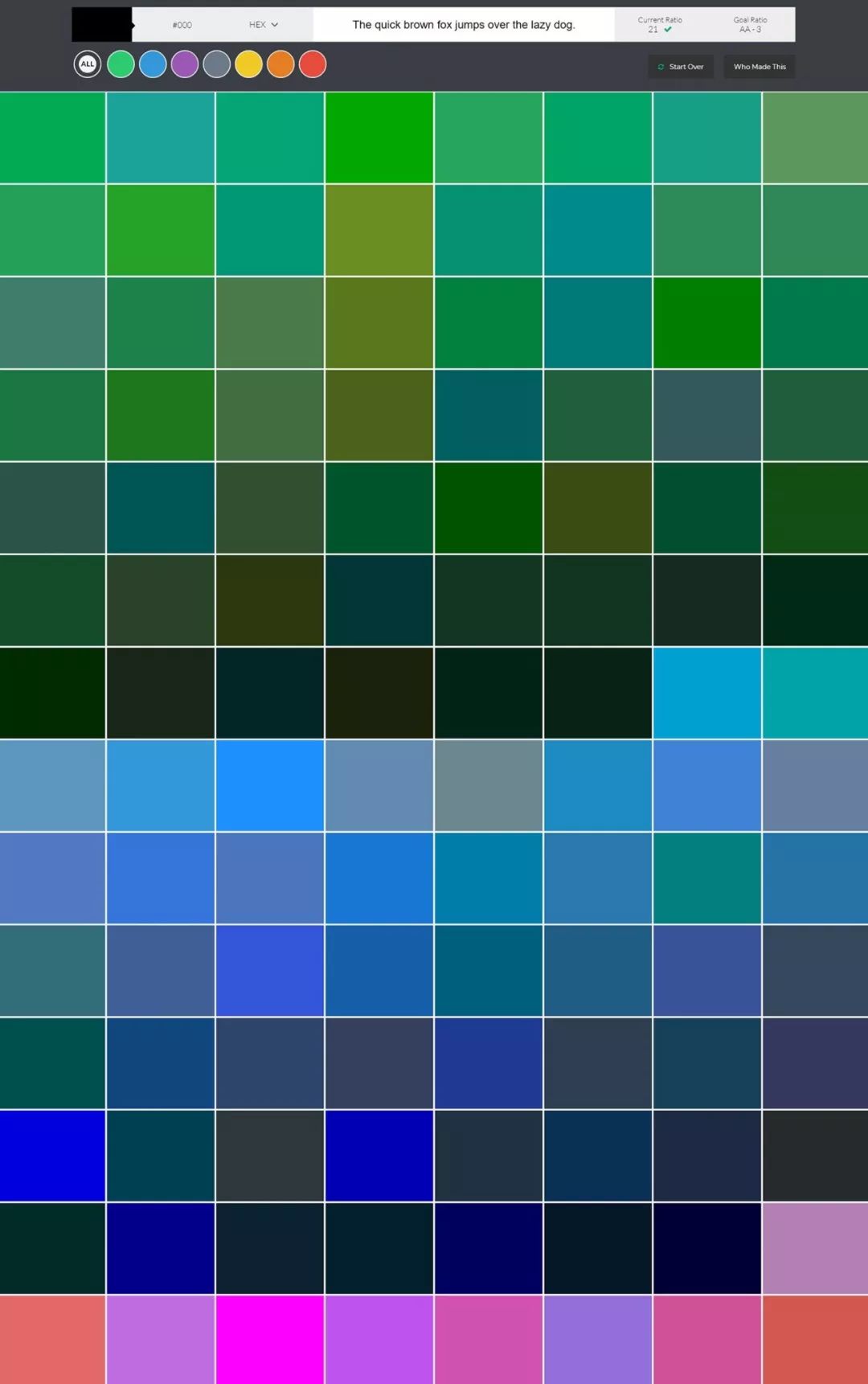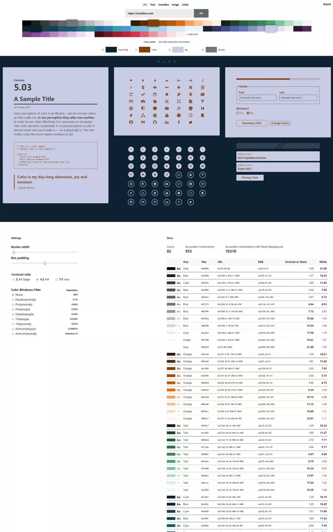 用于探索和查找可访问颜色的现代工具。确保每个人都能看到您的作品。