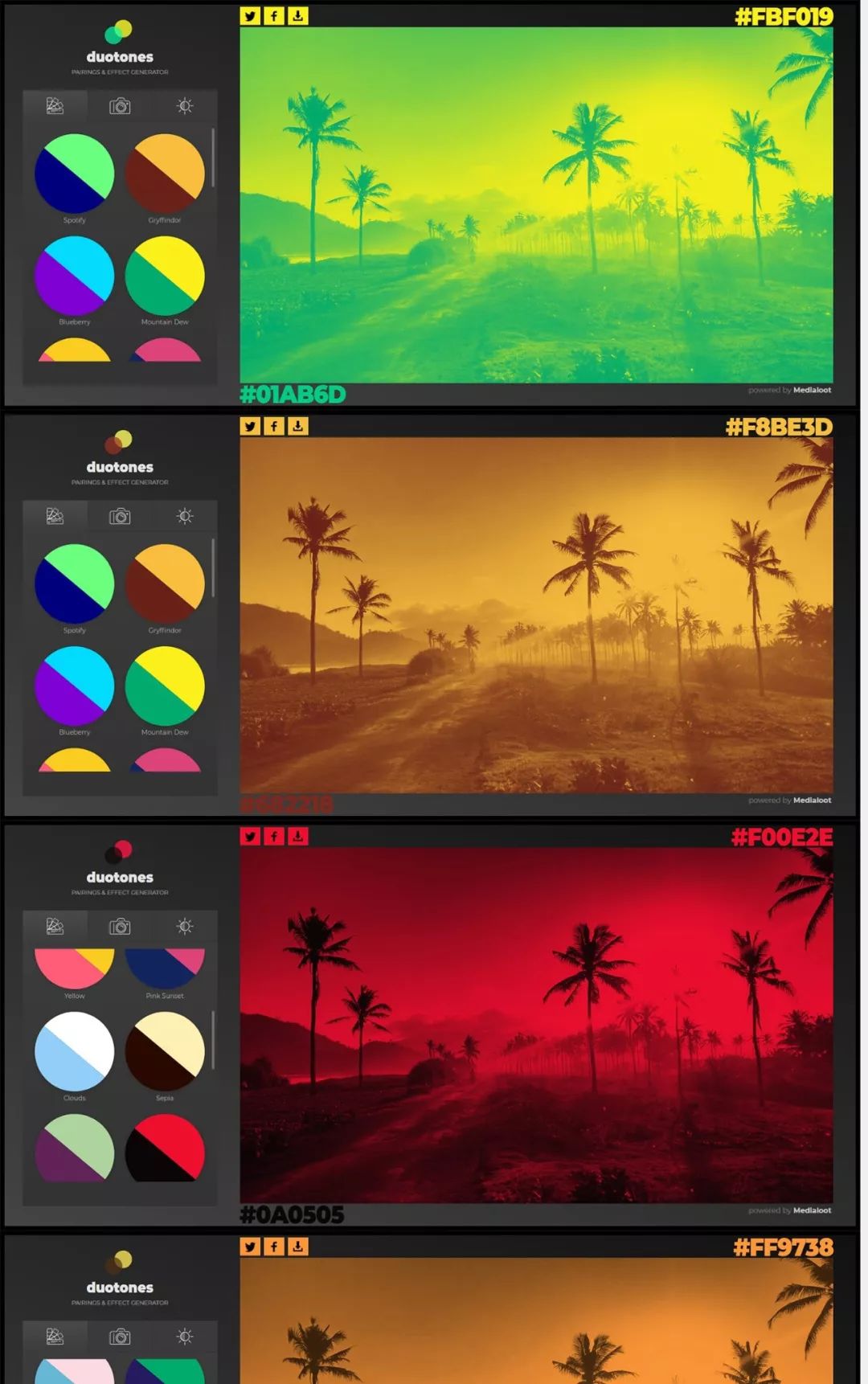 23. Instant Duotone Effect Generator立即在浏览器中创建漂亮的双色调效果。上传您自己的图像或使用我们的图像:包括几十个完美的双色调配对。