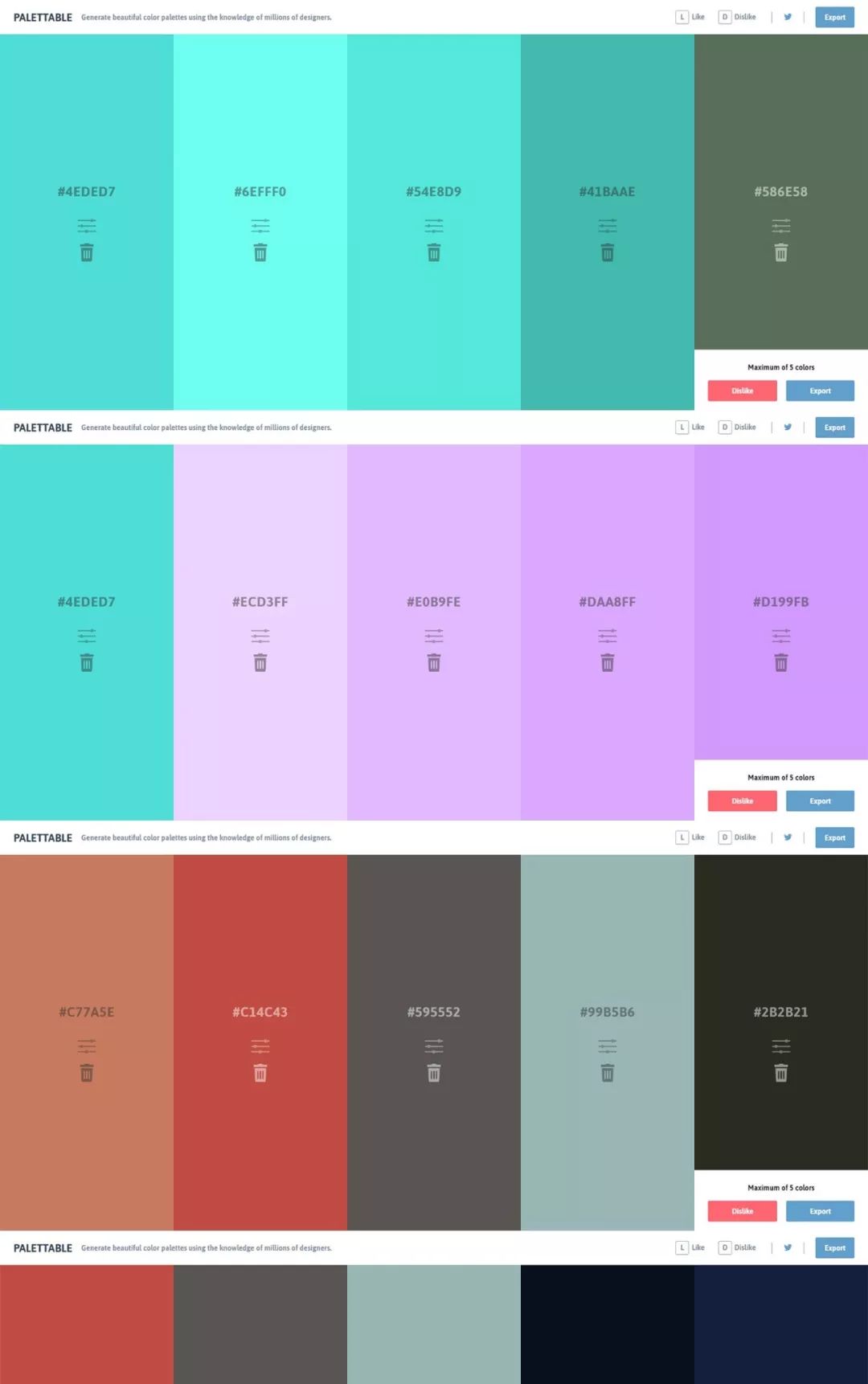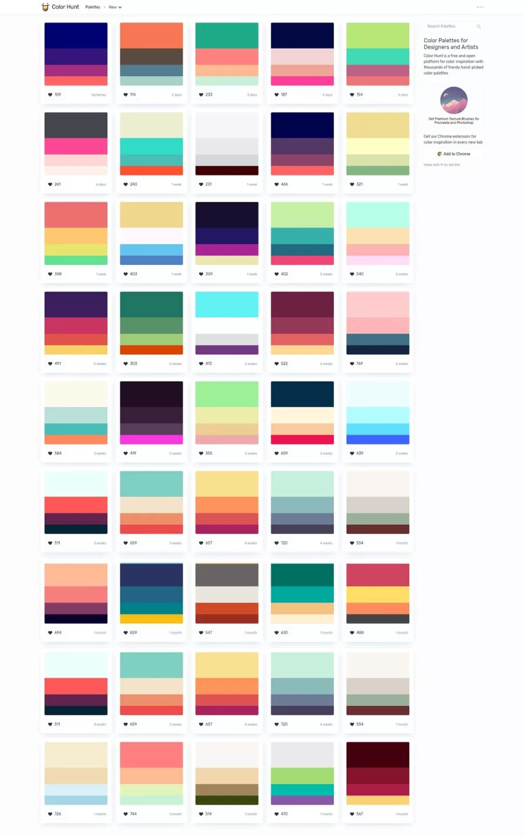 Color Hunt是一个免费开放的色彩灵感平台,拥有数千种时尚的手工挑选调色板.