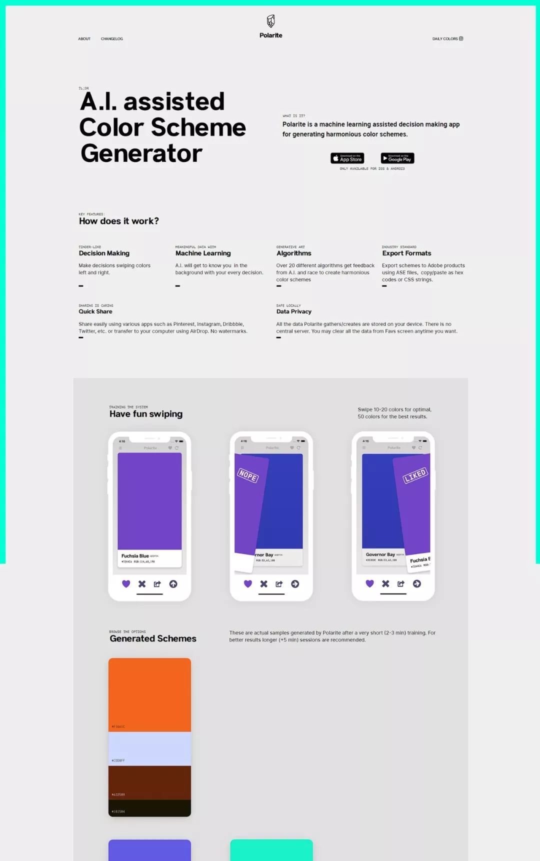 Polarite是一款机器学习辅助决策应用程序,用于生成和谐的配色方案。