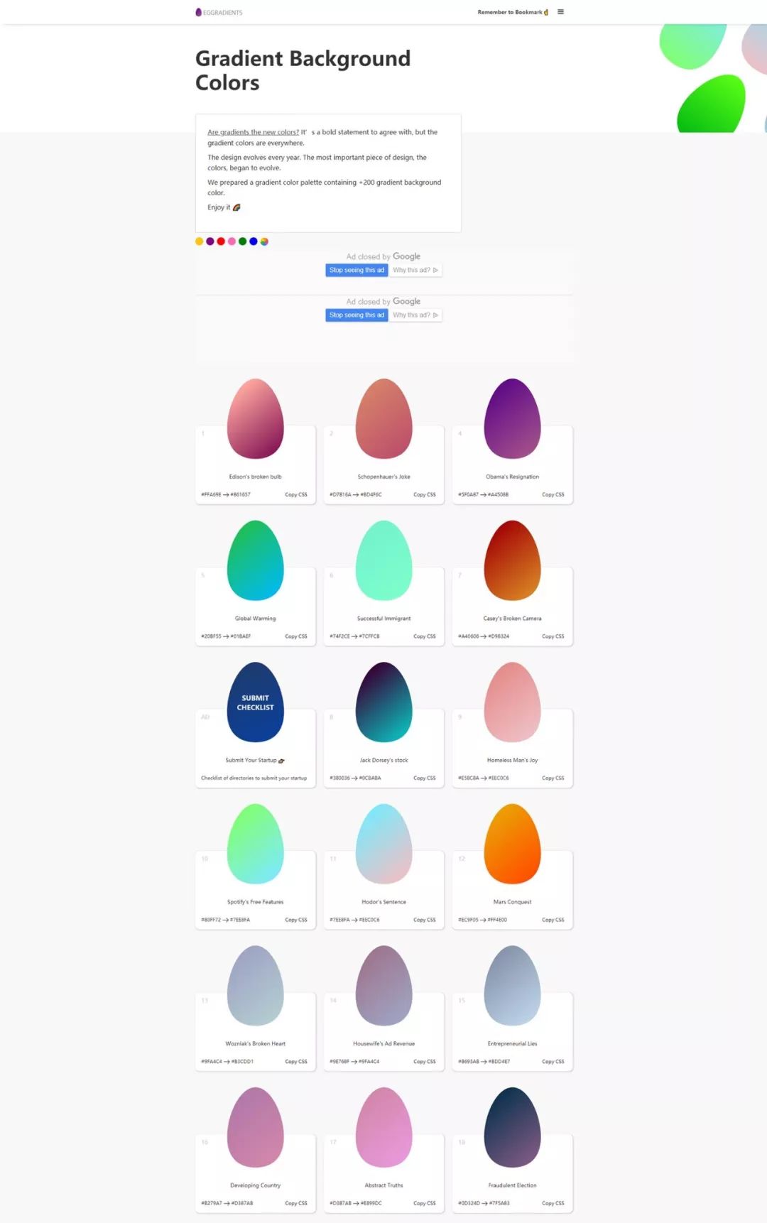准备使用渐变背景颜色。根据最新的设计趋势准备Cool Gradients。它以鸡蛋的形式供应。使用十六进制和CSS代码。