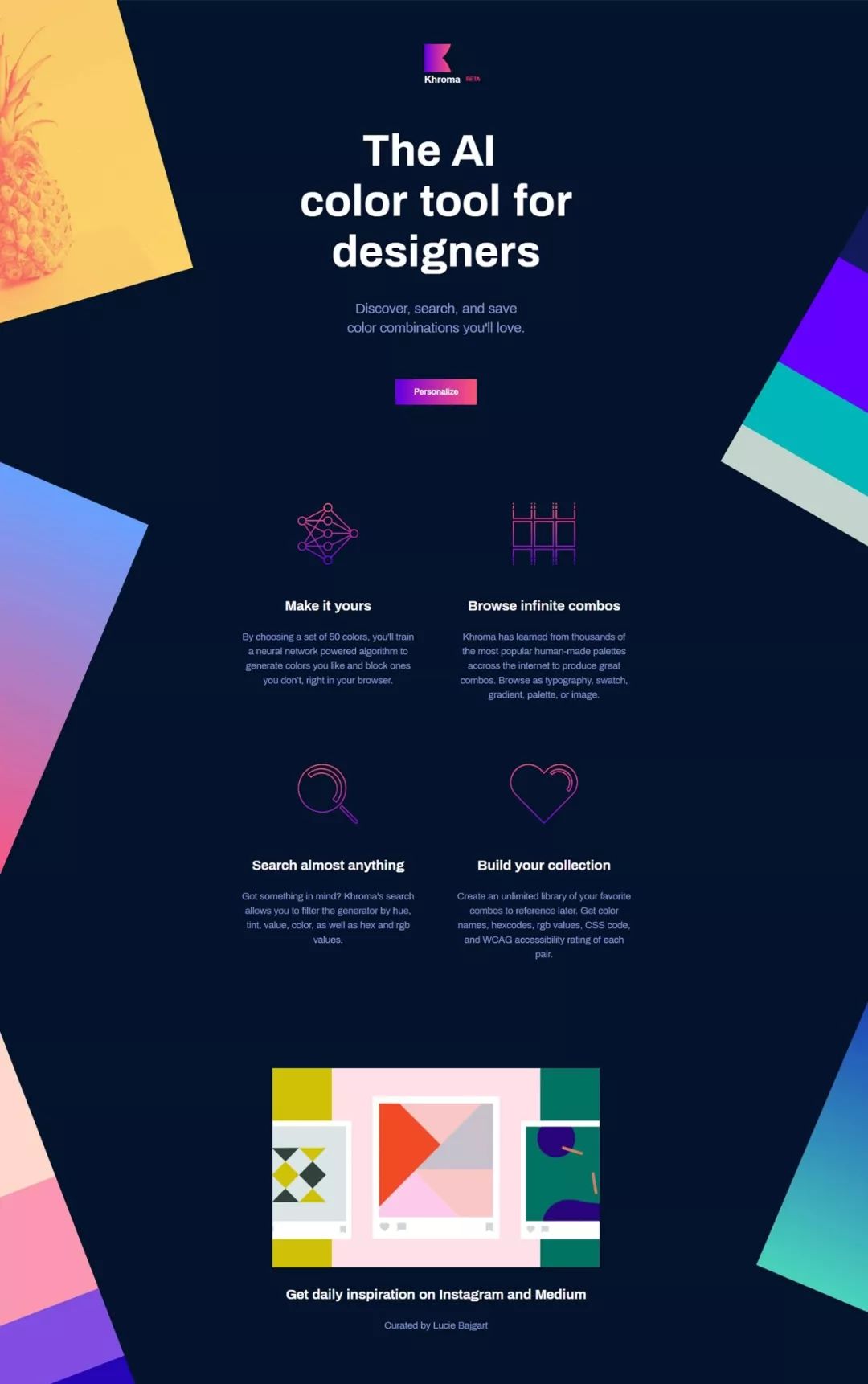 Khroma是生成,发现,搜索和保存您想要使用的颜色组合和调色板的最快方法。
