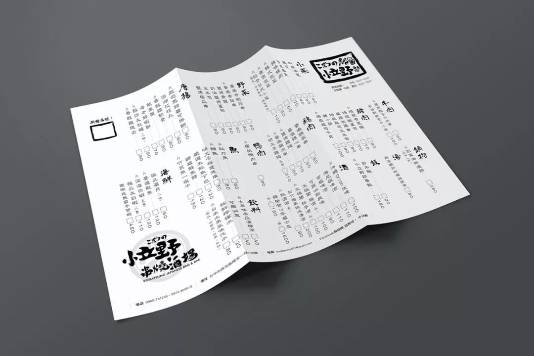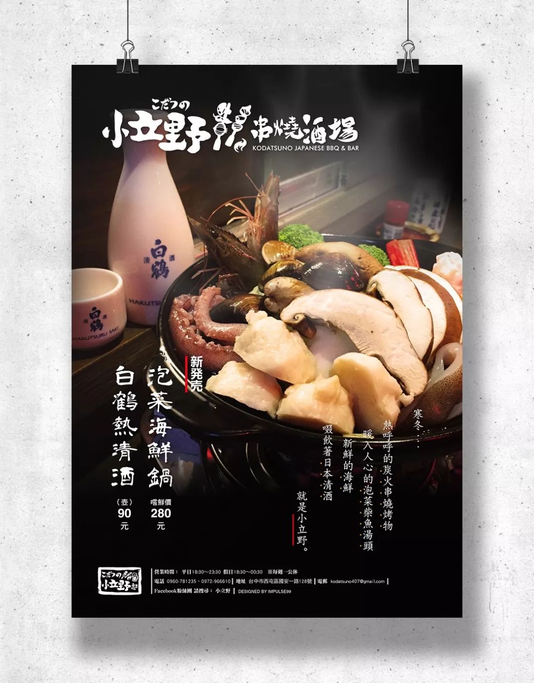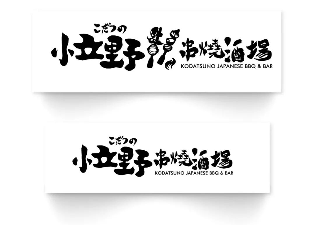 顺着这种风格,我们再来看小立野串烧酒场的logo设计,来自台北设计师叶竹的作品,整个视觉设计以书法字为主,食物图形为辅。