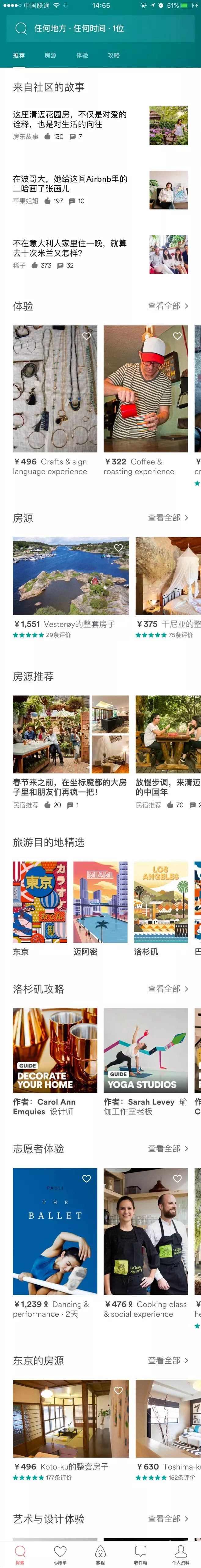 Airbnb移动端的界面中使用了大量1:1、3:2、13:21等尺寸大小的图片,有了基于黄金比例的图片尺寸让界面排版看上去更加合理舒服。