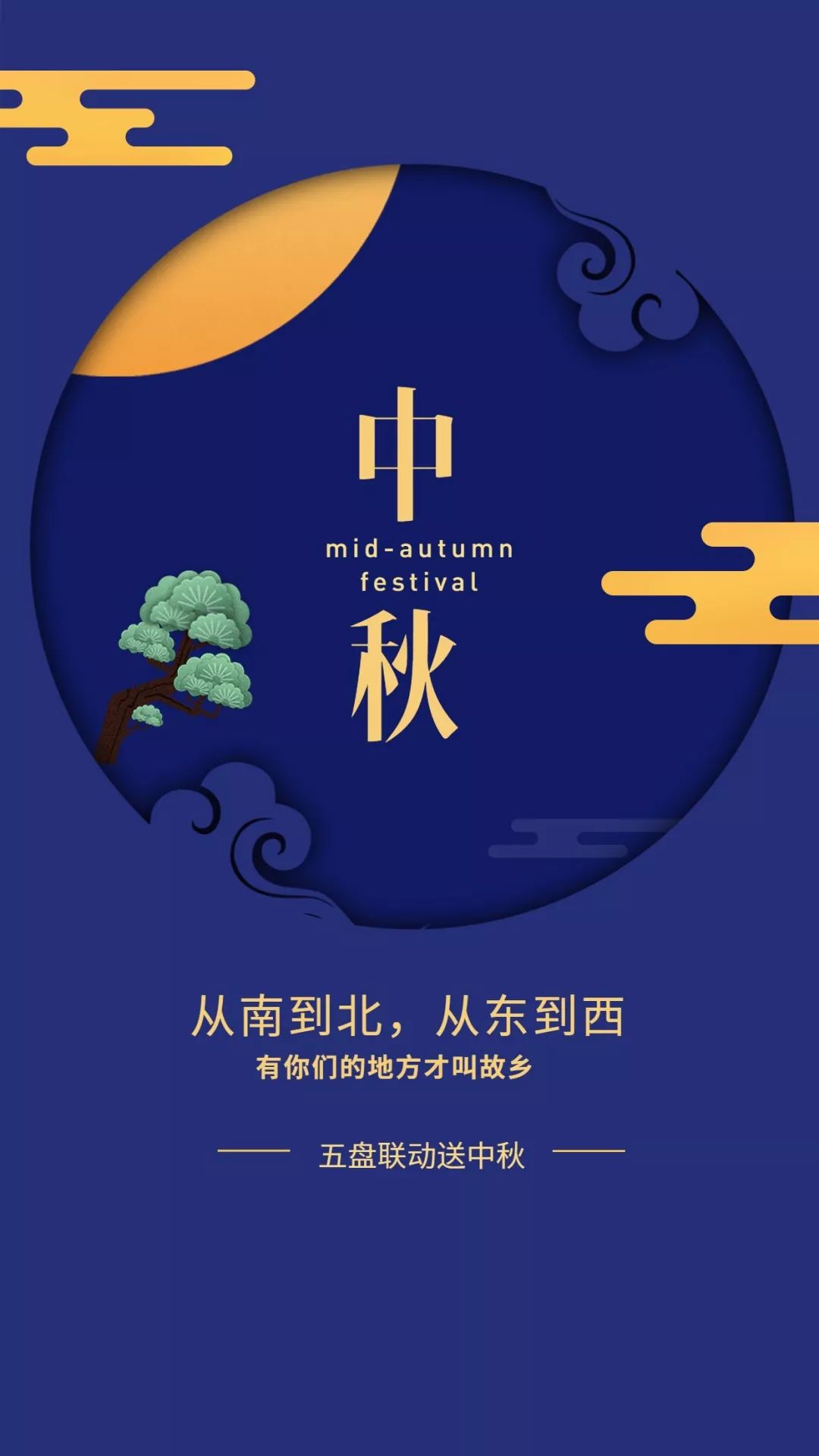 这种层层叠叠的剪纸风,很适合中秋这种传统节日,散发着古典气息,那字体也应该选历史感的宋体。