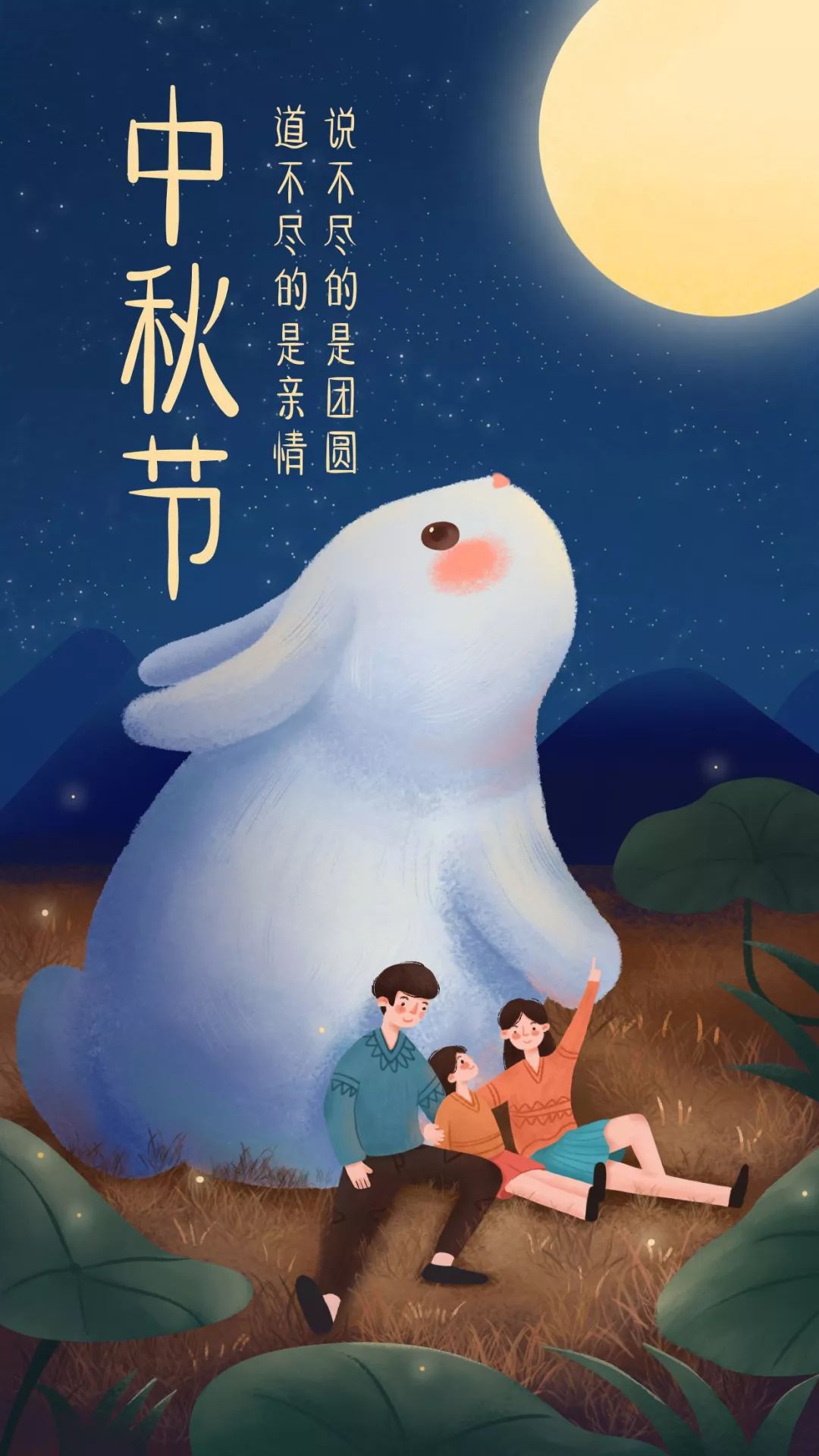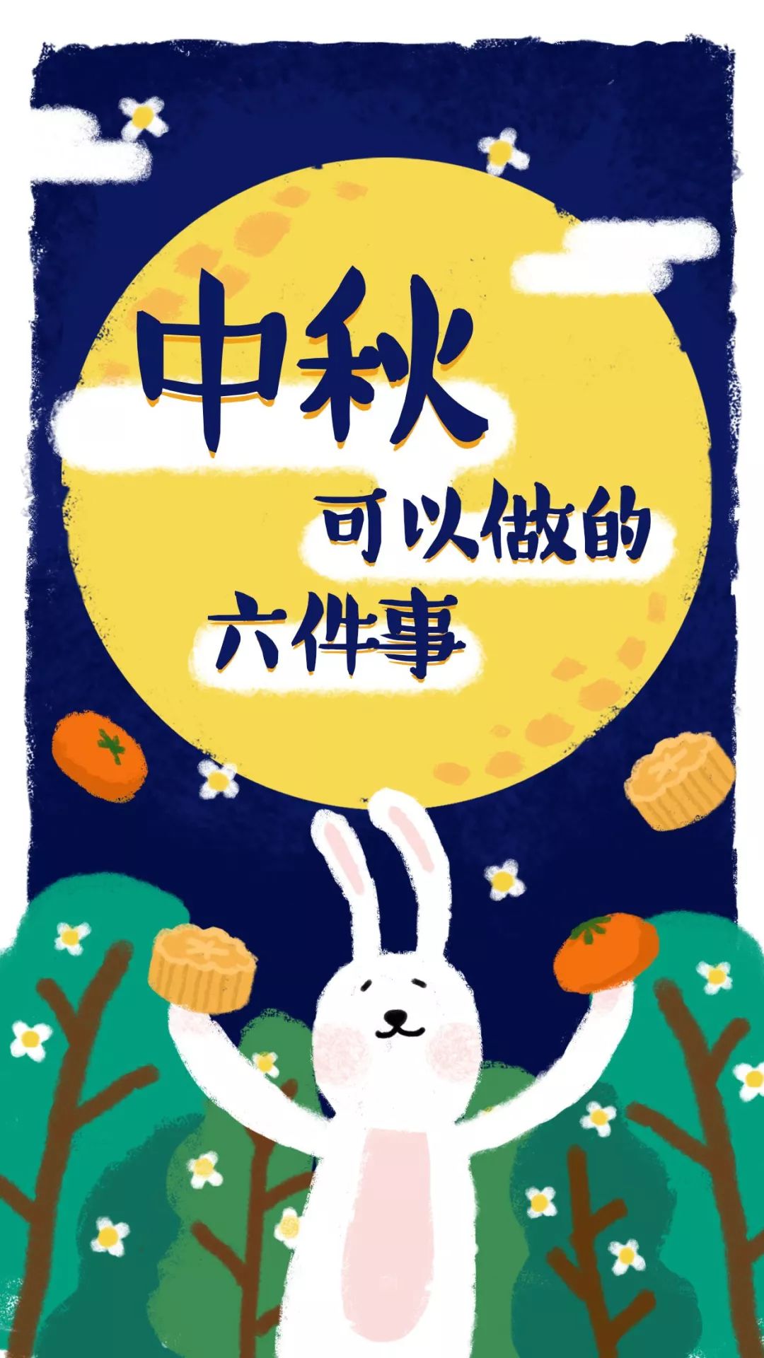 既然是中秋节,当然少不了玉兔,用插画表现最适合不过了~