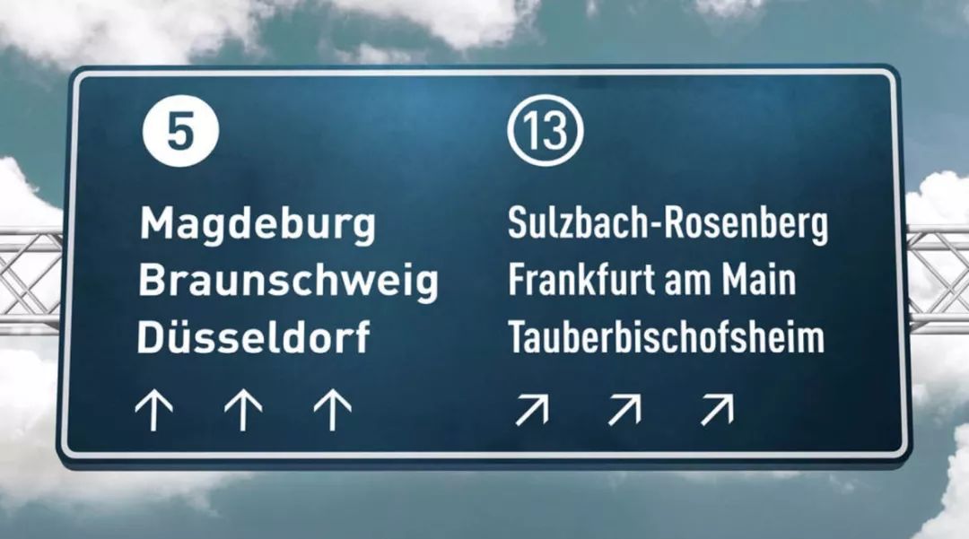 ▲ 在德国公路指示牌,以及机场,地图里面,大多数运用Din字体作为引导字体。