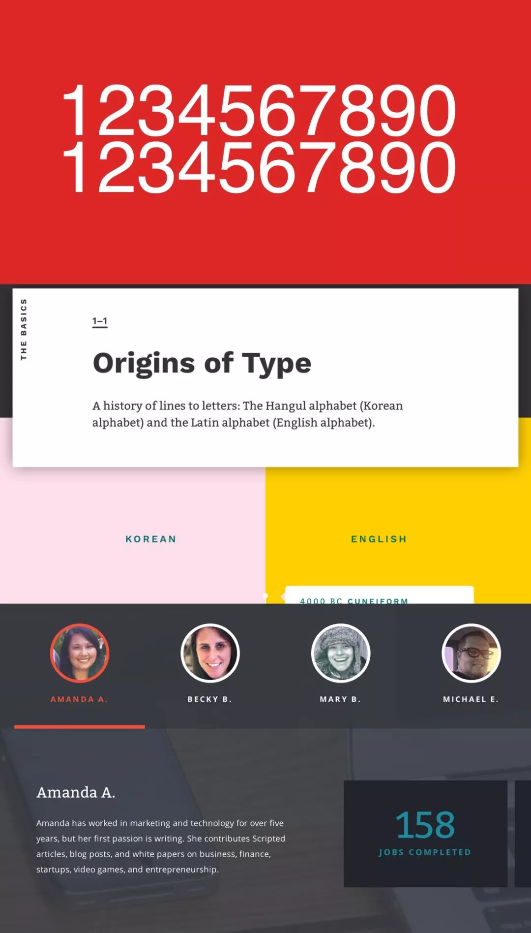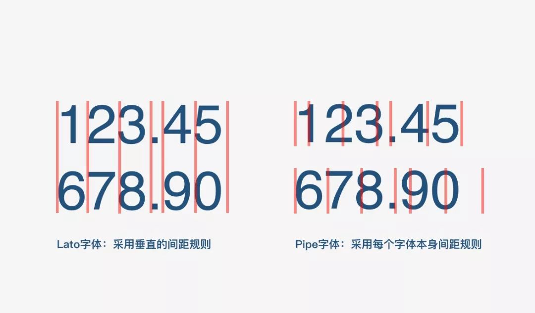 在字距上,业内两种做法,一种是每个字体相同的大小,比如我们熟悉的lato,也有一种做法是根据每个字母本身一个大小,比如1会小一些,9会大一些,这两种布局方式有好有坏,我个人更推荐前者,每个字母间距采用一样的!