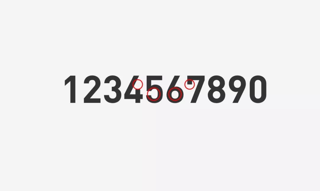 ▲ 缺陷:前面我们说了DIN在公路以及杂志,平面设计中用的很多,但是直接拿到互联网APP设计中各种复杂的场景,DIN就没有那么的完美,如图中,4的开头较大,以及5,6字体的圆形不够一致,7缩小后识别度问题,所以很多公司都会基于这些问题进行二次设计,这也是前面竞品分析里面提到,为什么微信,京东,百度会这个基础上再设计的原因。