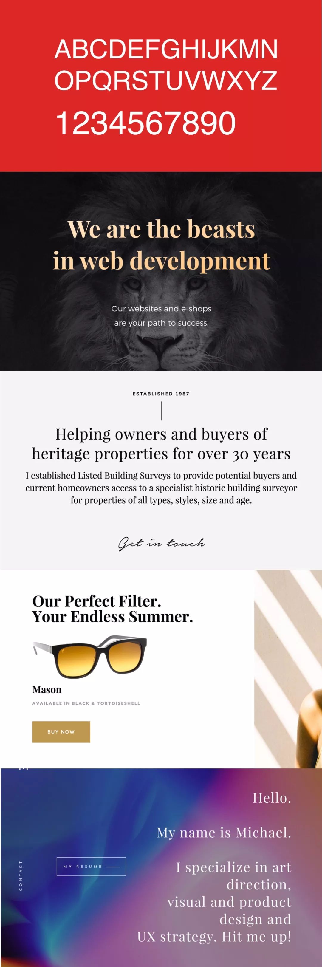 如果只让我推荐一款衬线英文字体,那么必须是Playfair Display莫属,心头大爱的字体,古典,现代优雅于一体,不知道多少大牌一直用这个字体做设计。