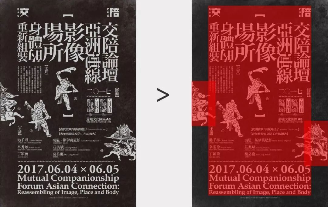 下面这个海报同样使用了内外空间的手法,并且主标题同时存在于内空间和外空间,起到一个串联的作用,这也可以称为“破空间”。