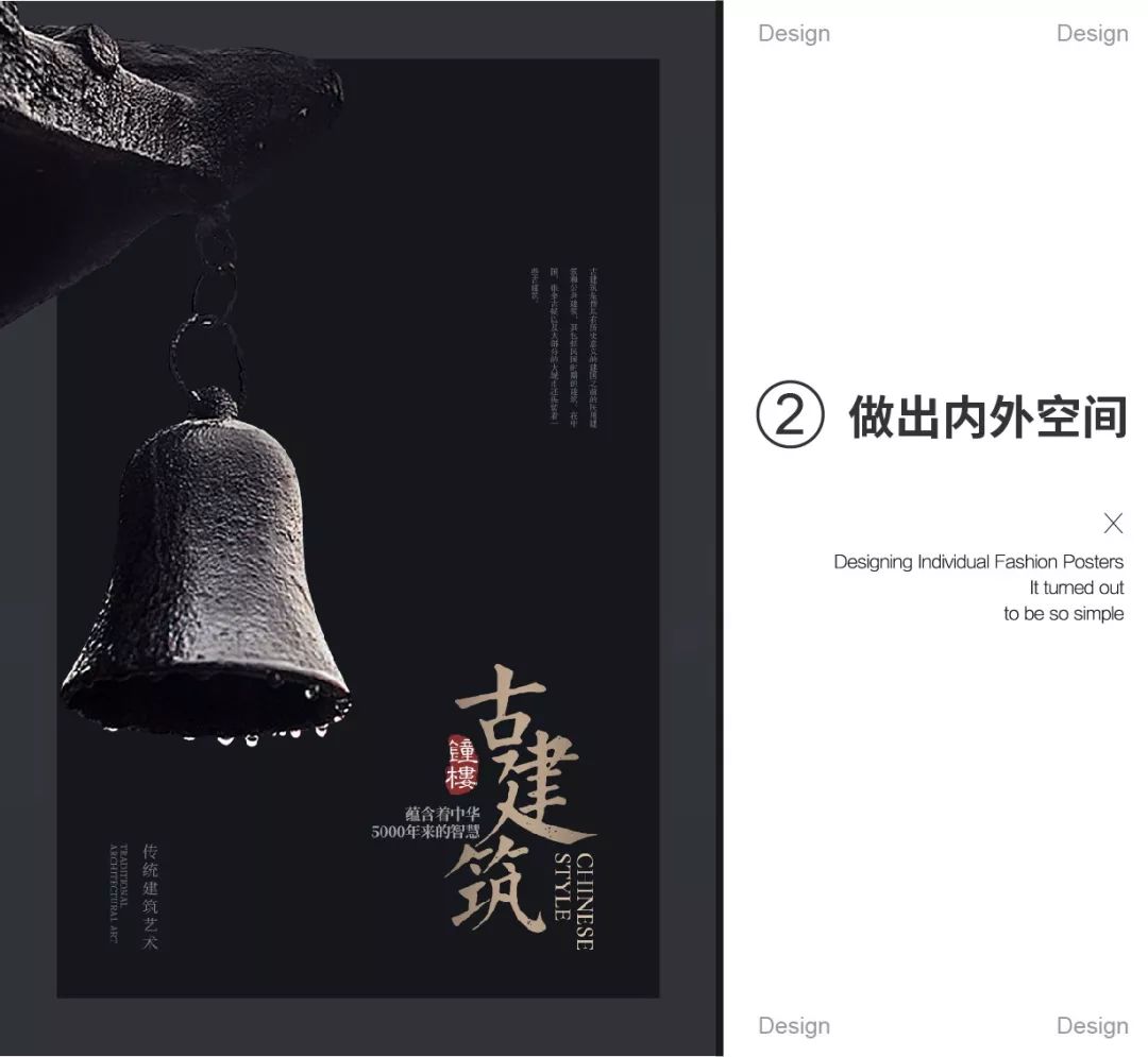 设计师都知道,要想画面有设计感,就要打破框架,像下面这个案例,把空间分成了两部分,一个外空间一个内空间,让画面“浮”出来,有一种3D效果。