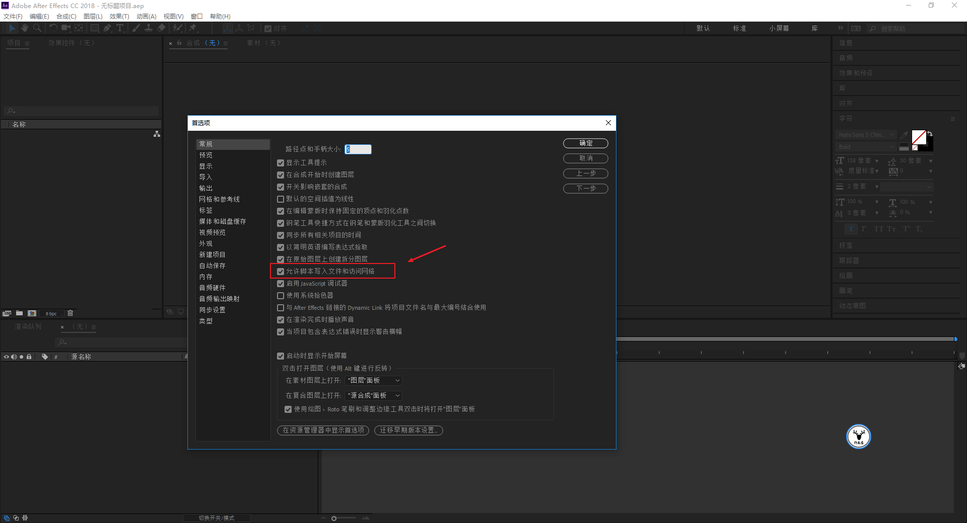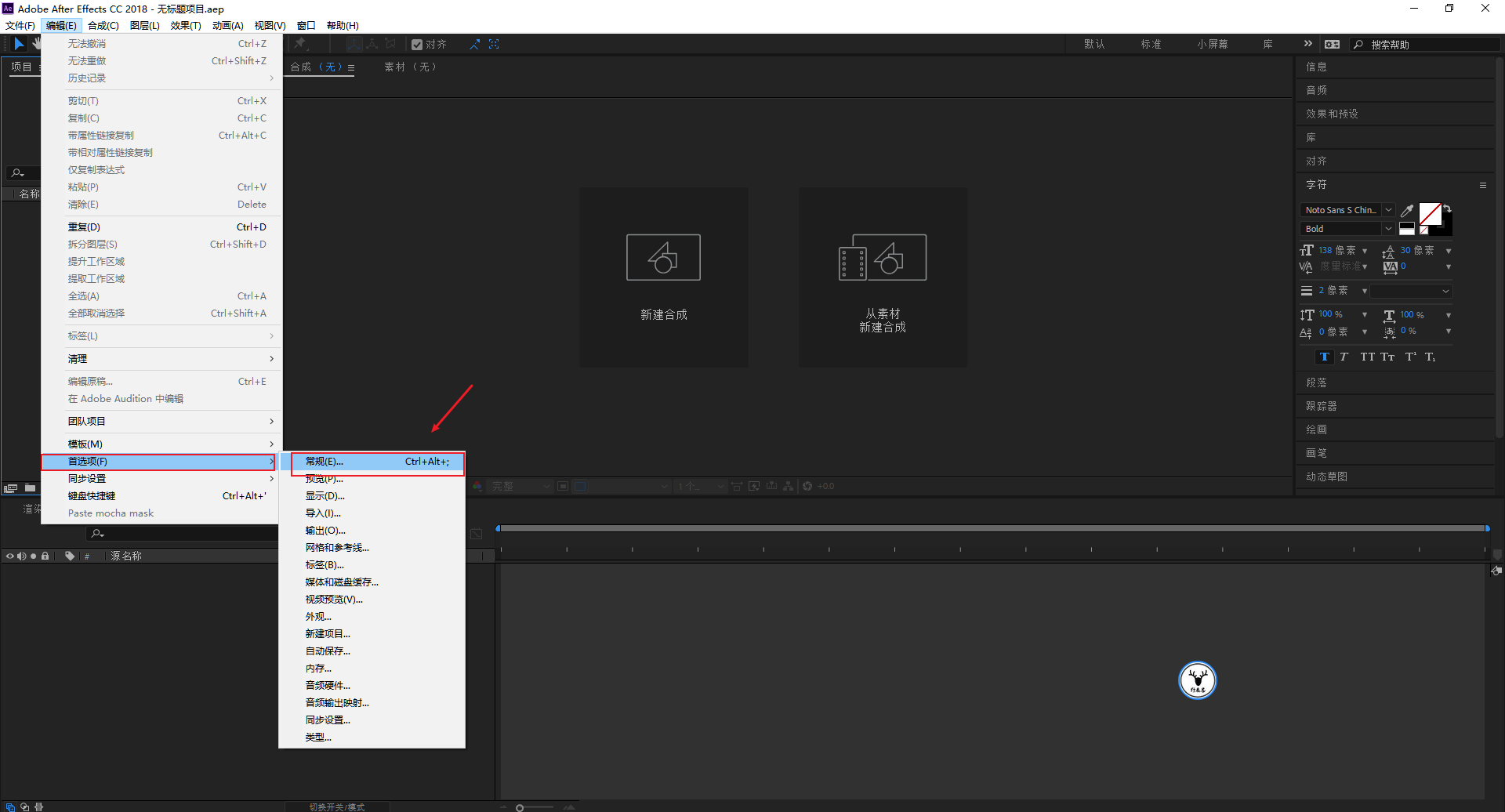 本篇文章也会使用到AE的脚本,先说一下脚本的安装方法吧,首先打开AE,执行编辑-首选项-常规: