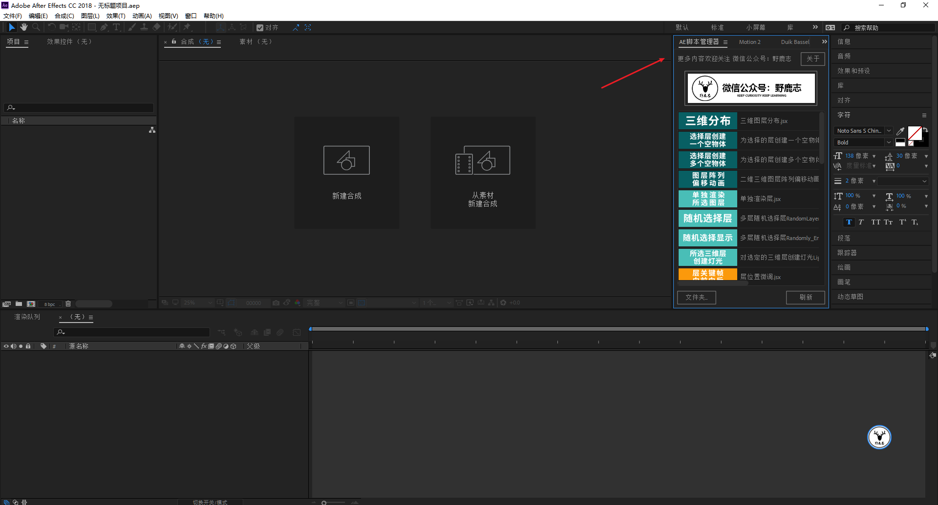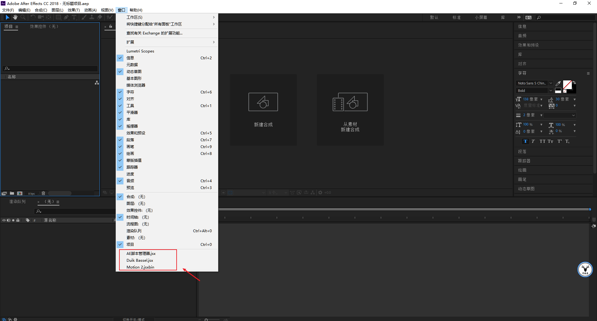 安装脚本以后,重启AE,就可以在窗口下面看见你安装的脚本了,有一些脚本需要借助脚本管理器调用: