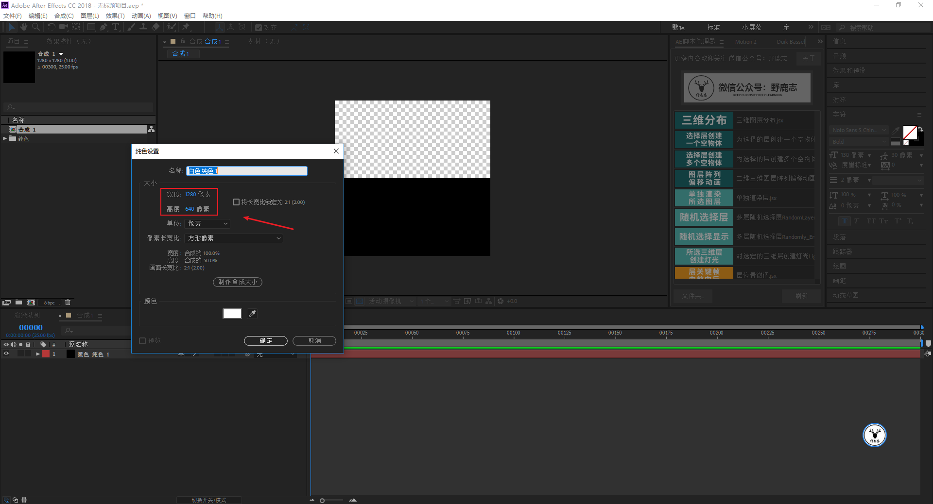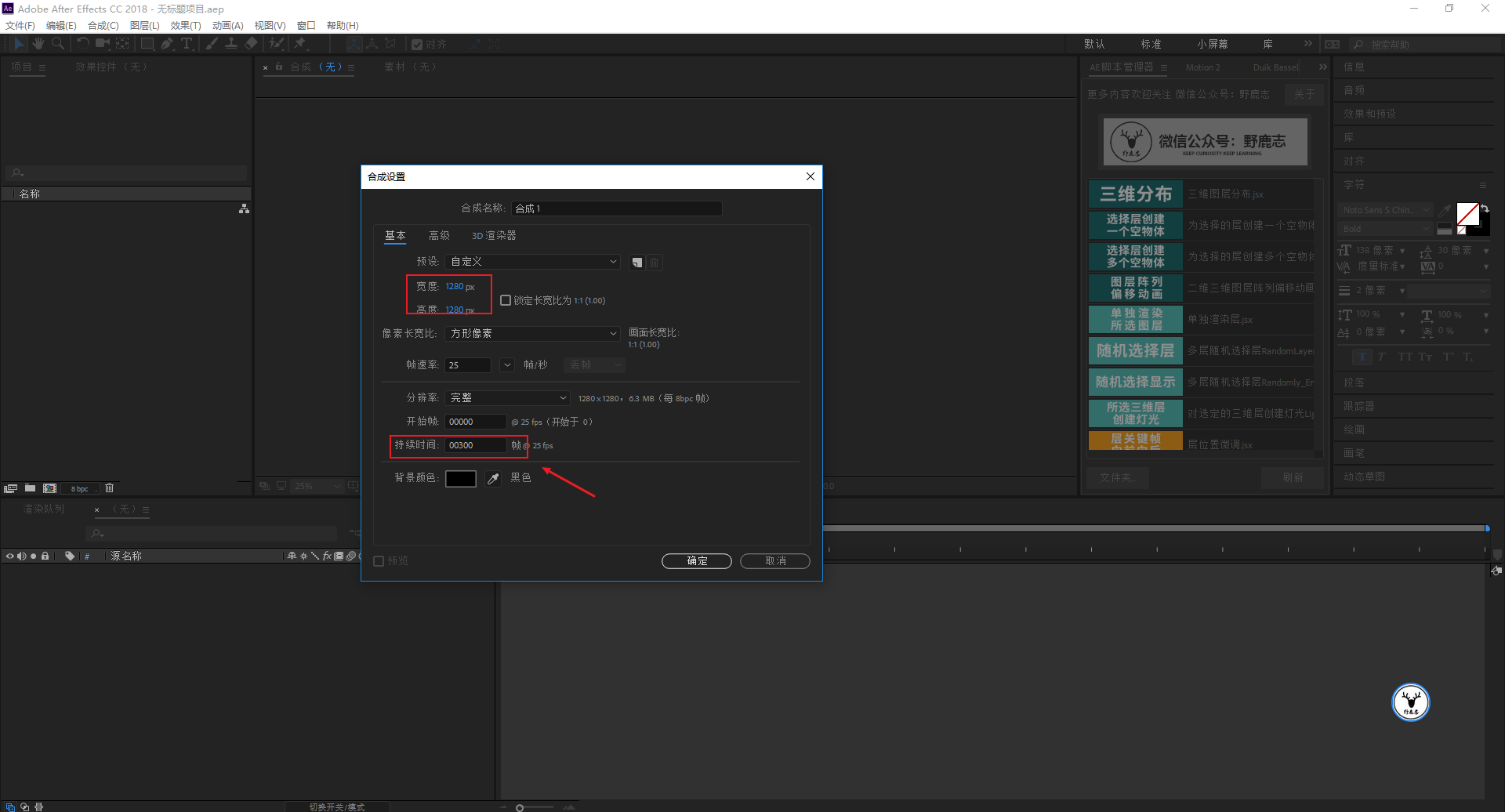 脚本安装完毕以后,进入正题吧,新建一个正方形的合成,暂时先弄300帧吧: