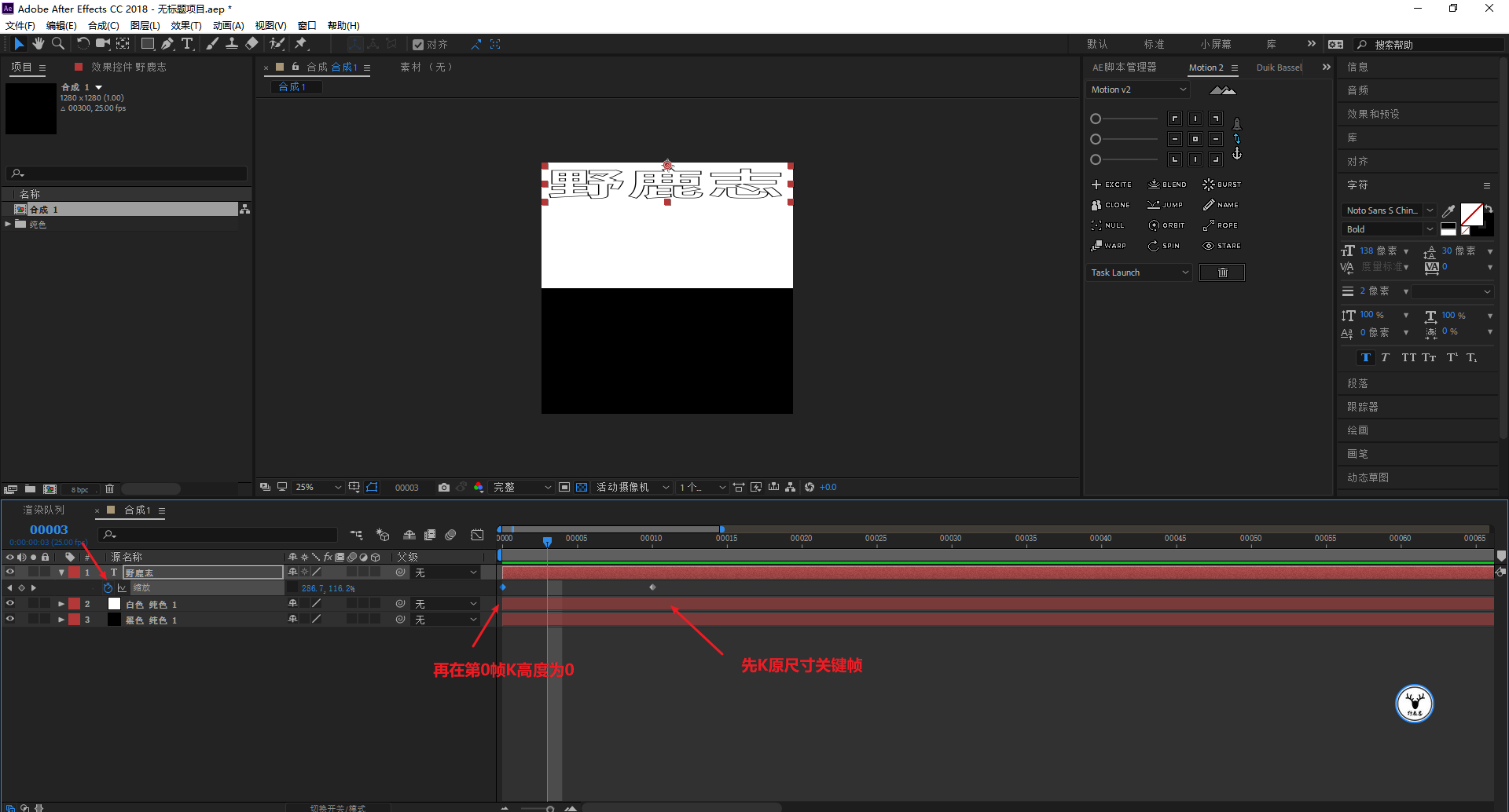 首先将文字的锚点居中,调整好文字的大小以后,使用motion2将锚点放置于文字的顶部: