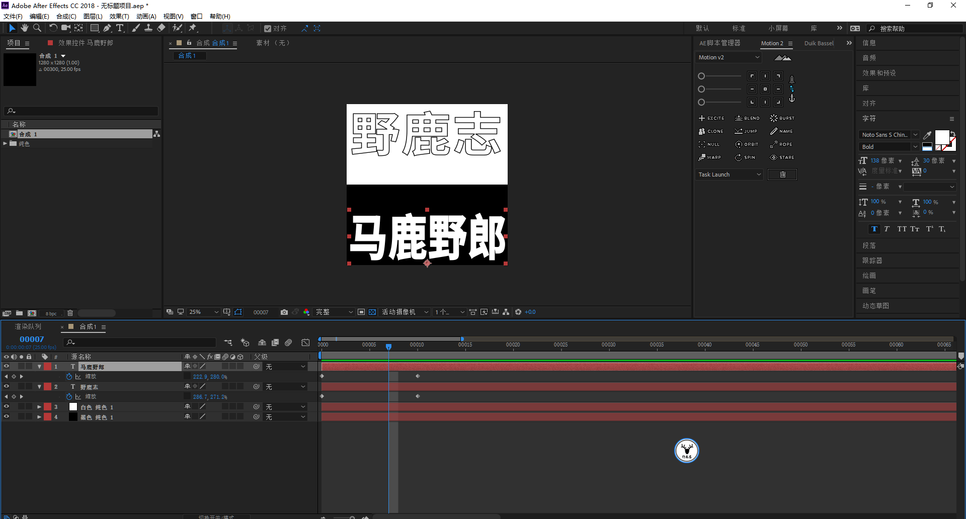 第二个动画是文字从左上角和右下角进行的等比缩放动画,这个更简单,直接做好其中一个文字动画以后,康秋加D复制一份出来。