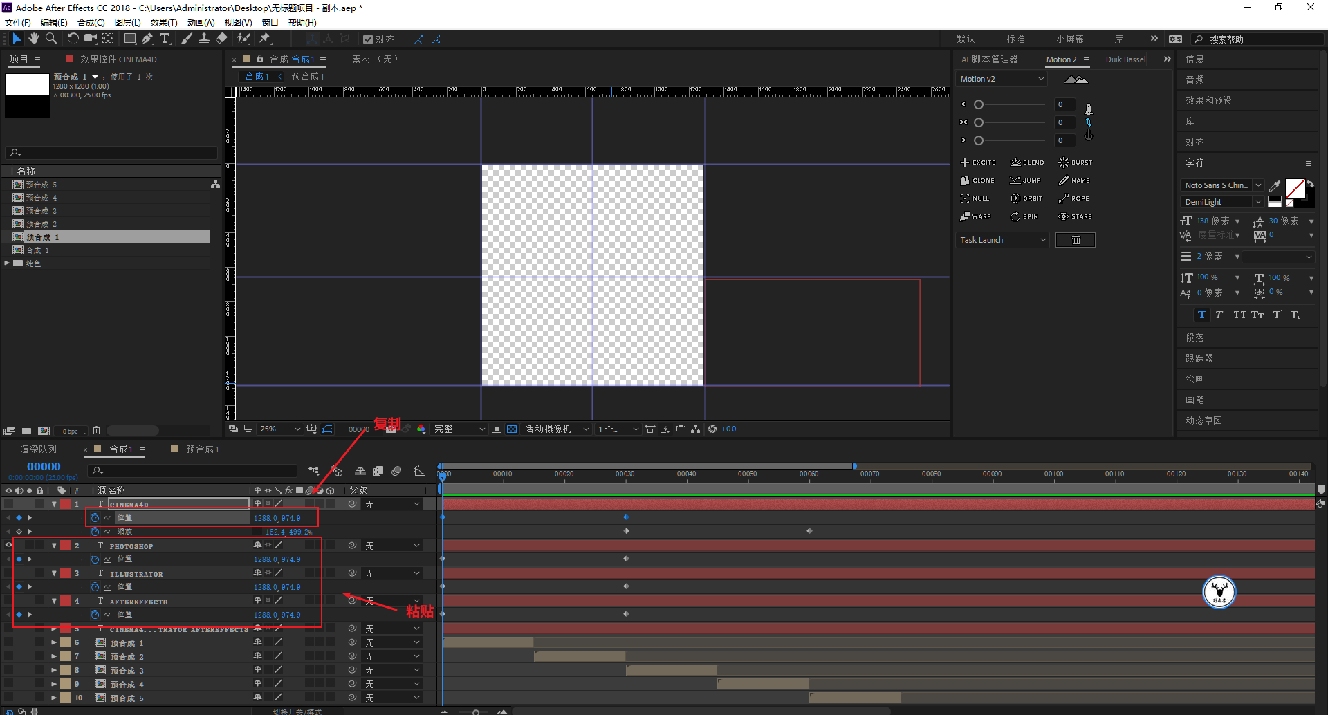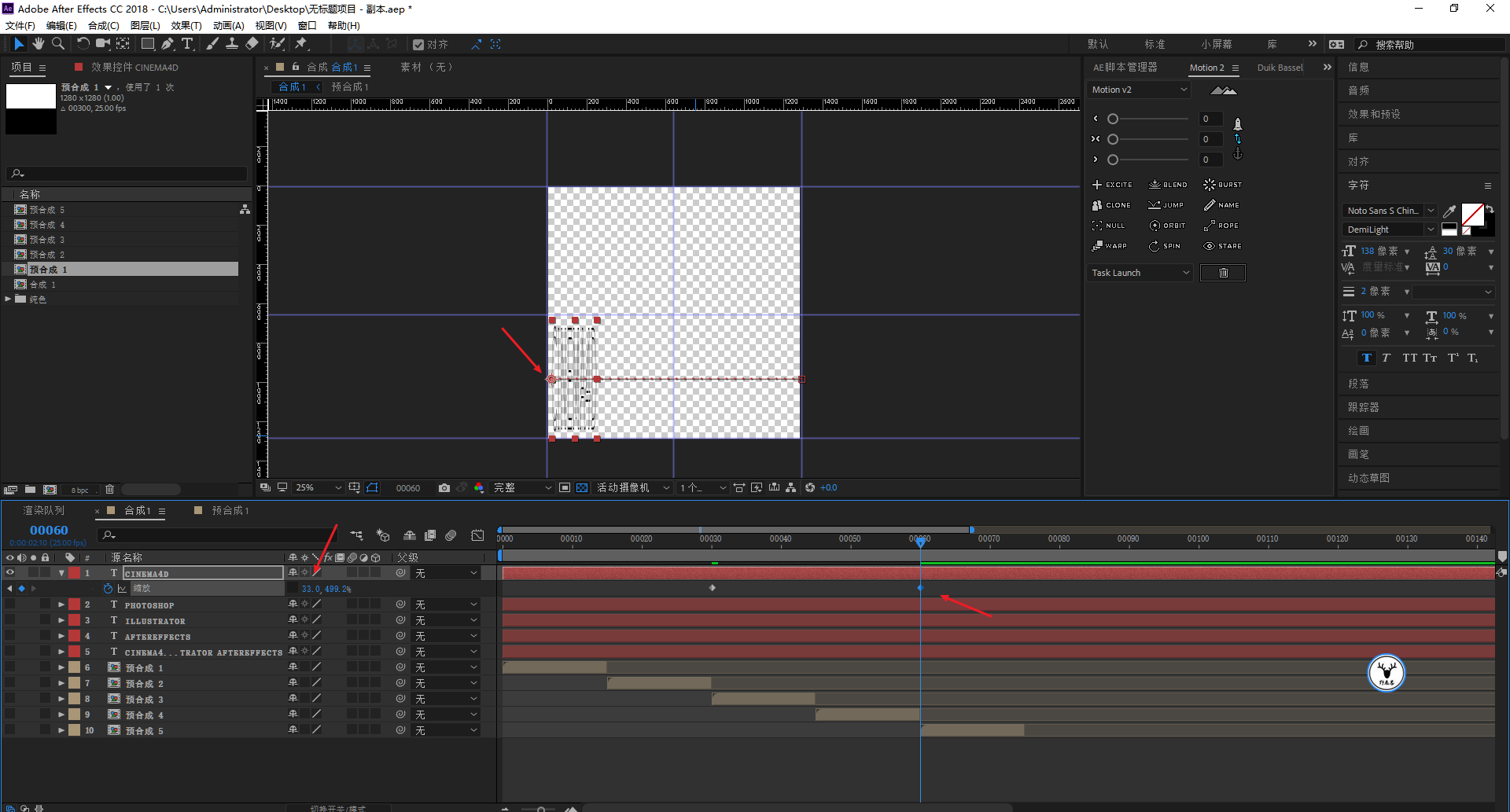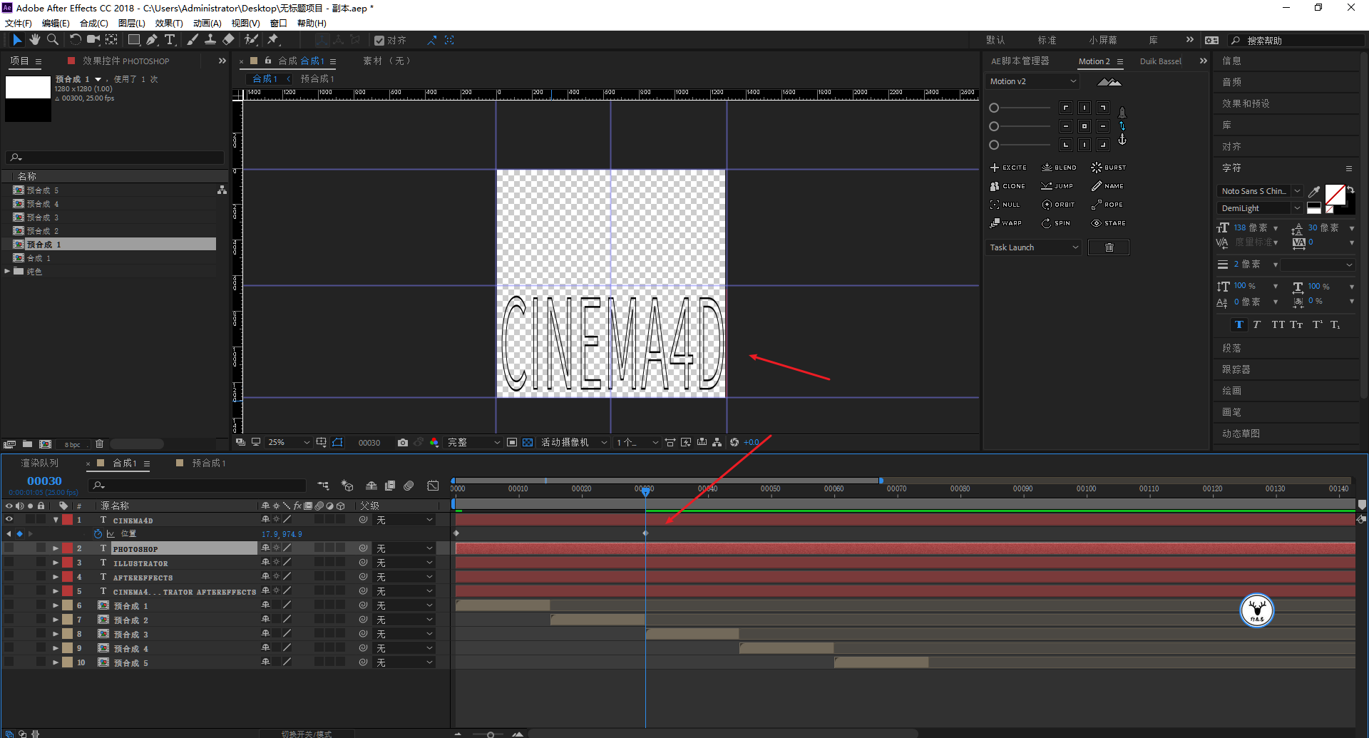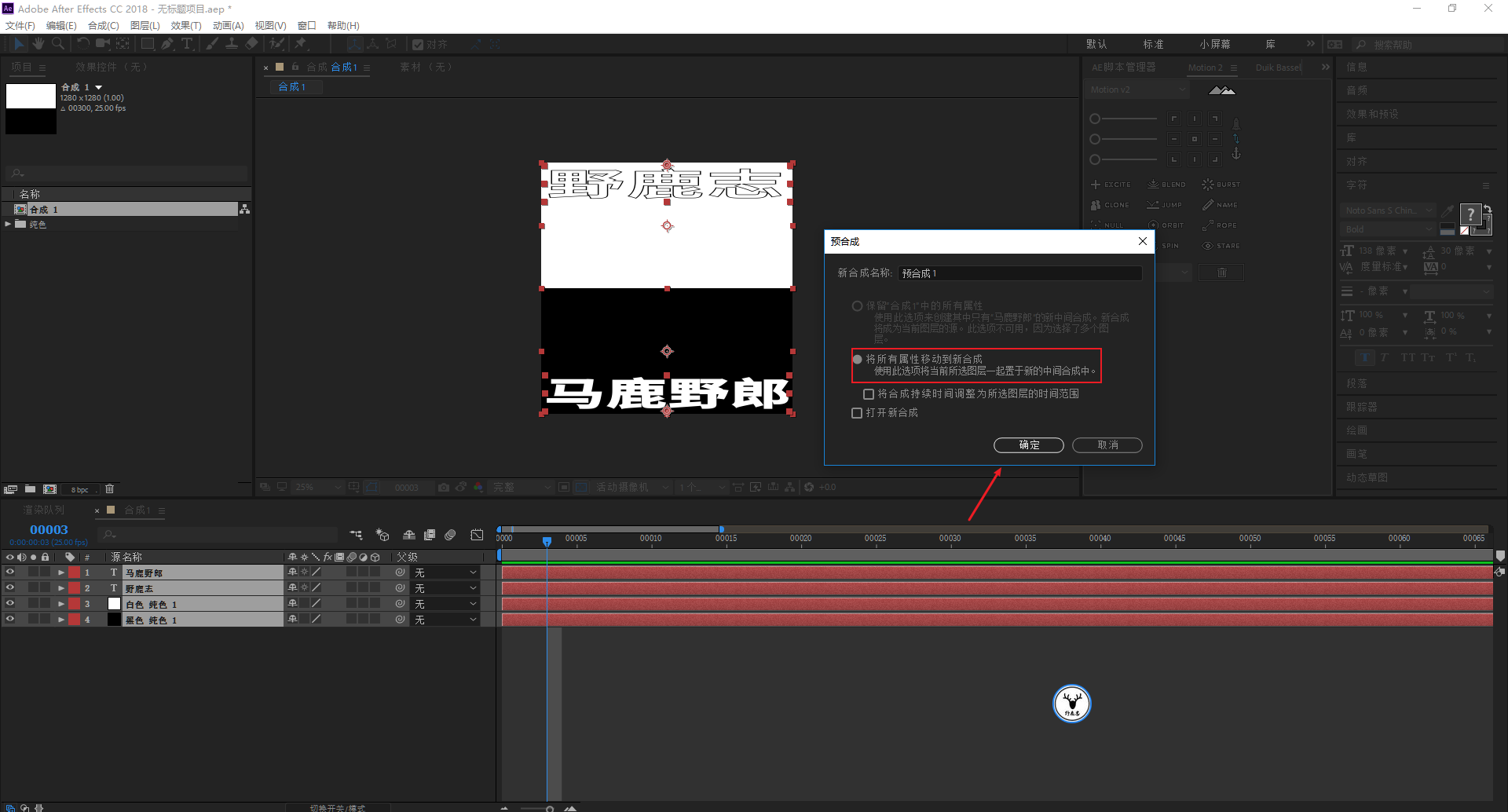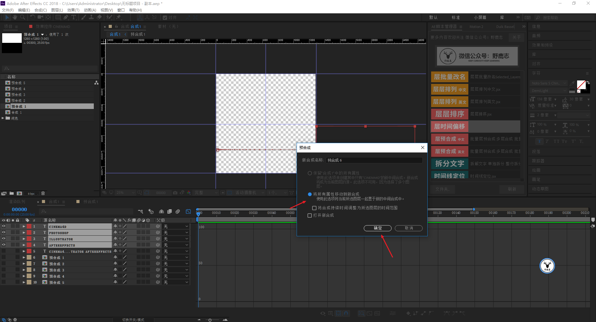 每组文字的缩放以及位移动画都做好以后,先把它们添加到一个新的预合成里: