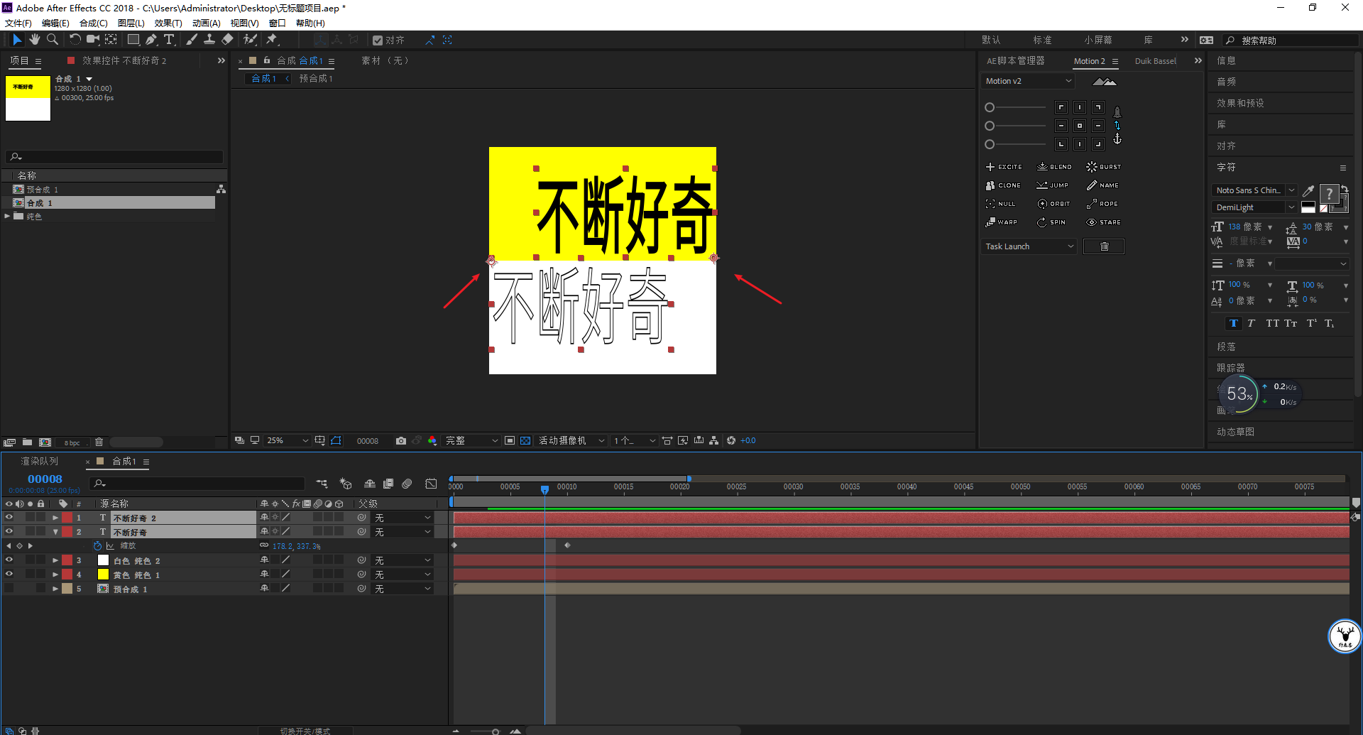 做好以后可以隐藏掉第一个预合成,然后继续新建纯色图层开始做第二个动画: