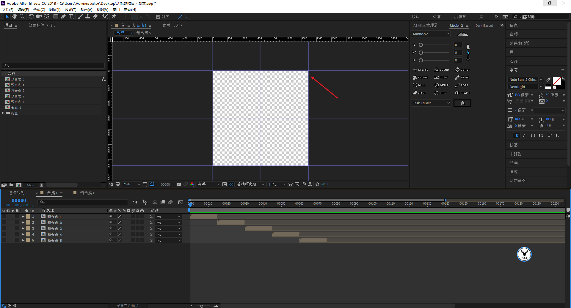 做好以后,选中五个预合成按噢特儿加向右的方括号键裁掉多余的部分: