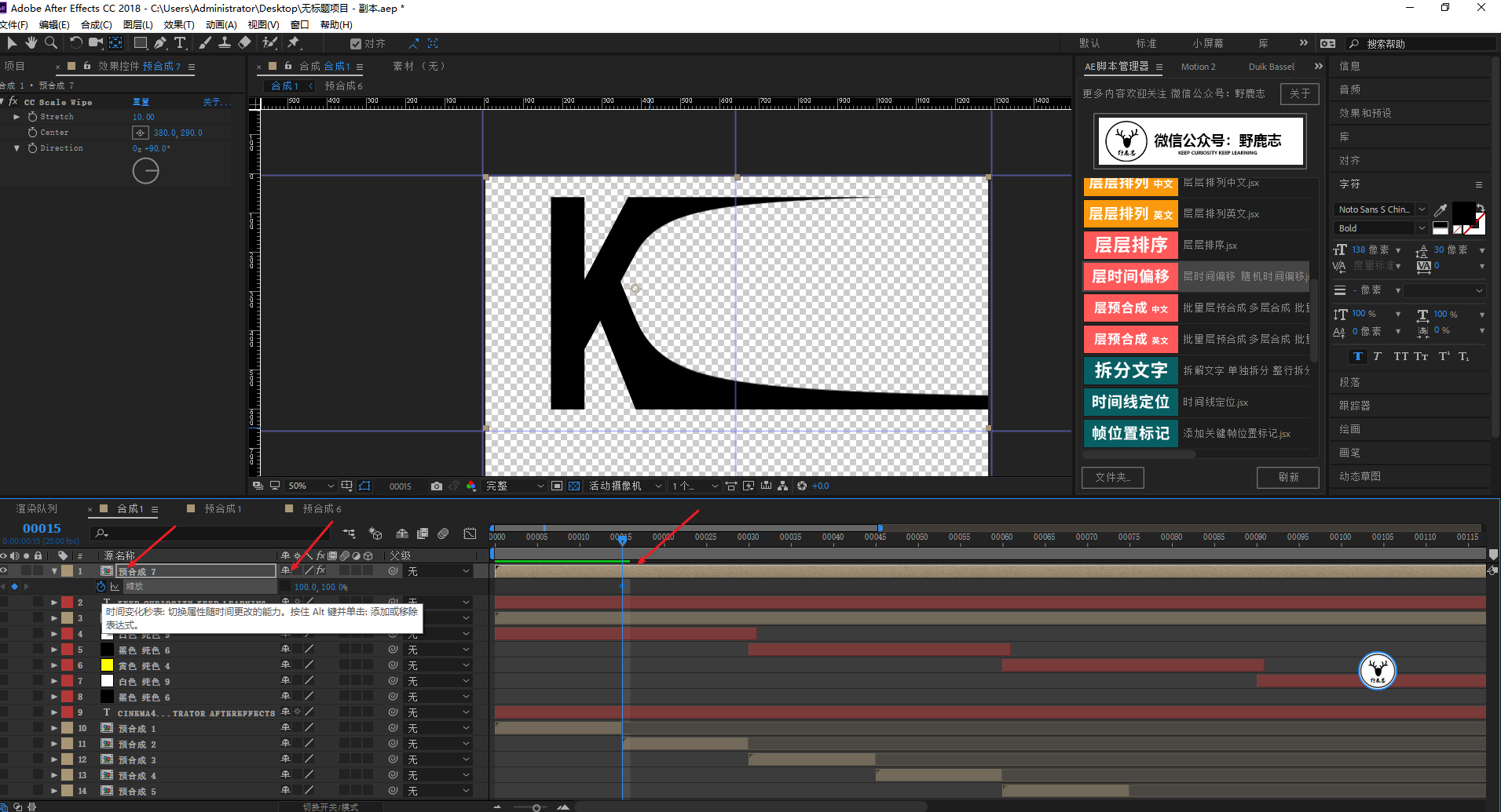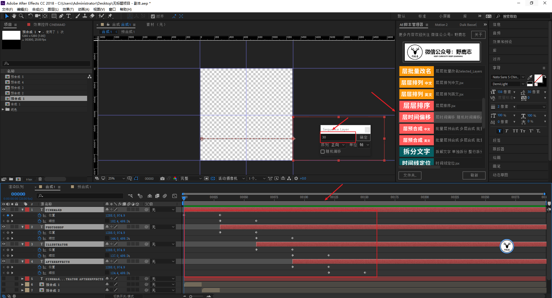 双击以后数值输入10帧,这样所有的预合成就会统一偏移10帧,是不是很方便,灵活使用脚本会比手动效率高很多: