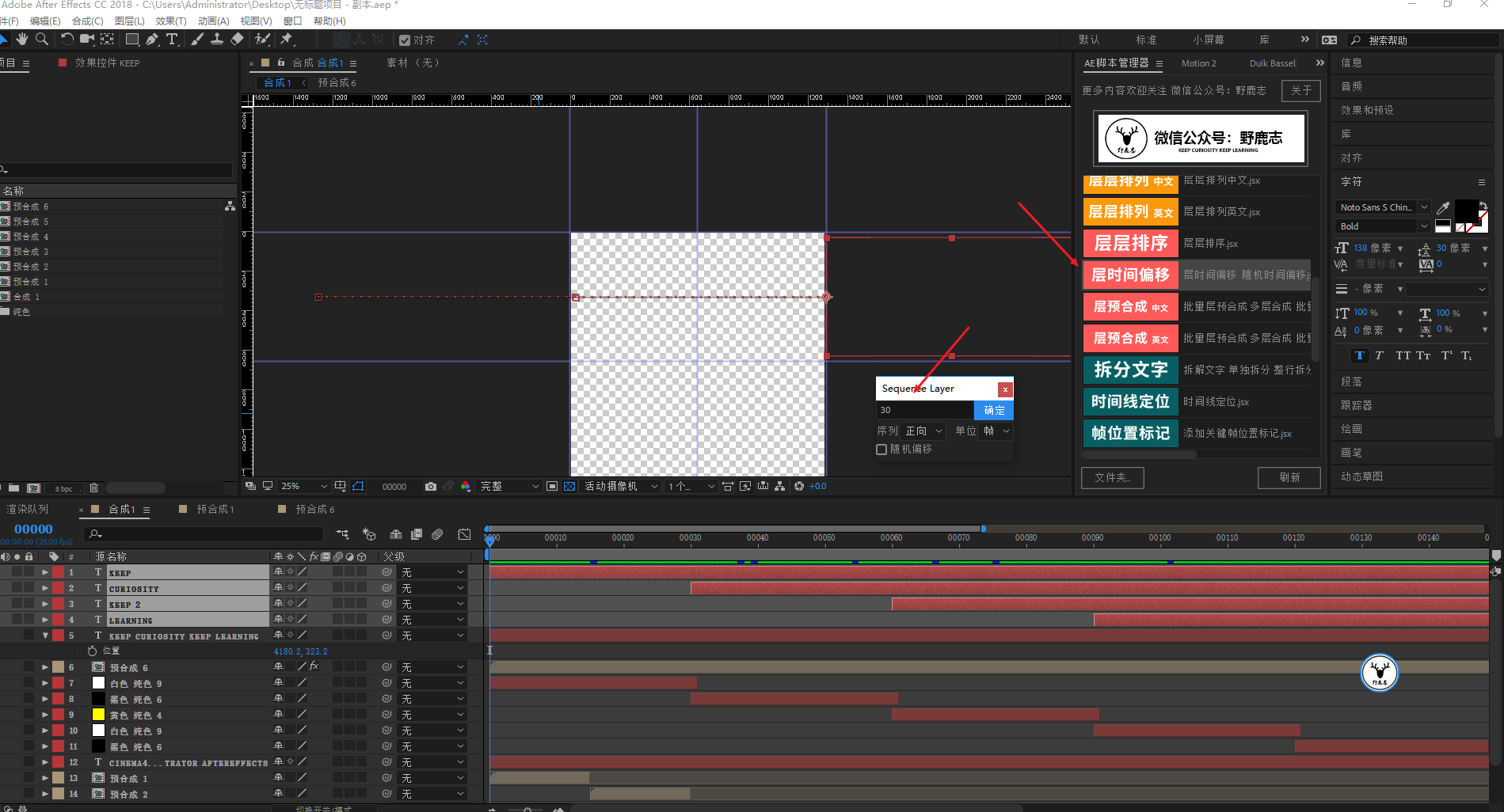 同样在选中所有预合成的前提下,我们在脚本管理器中找到这个叫做层时间偏移的脚本。