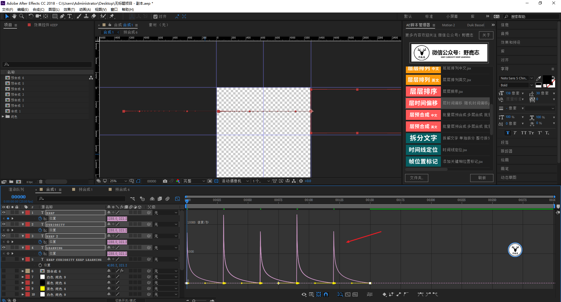 剩下的也是同样的道理,这里就不再啰嗦了,至于关键帧的位置大家看着效果来,在文字速度变慢的地方K就可以。