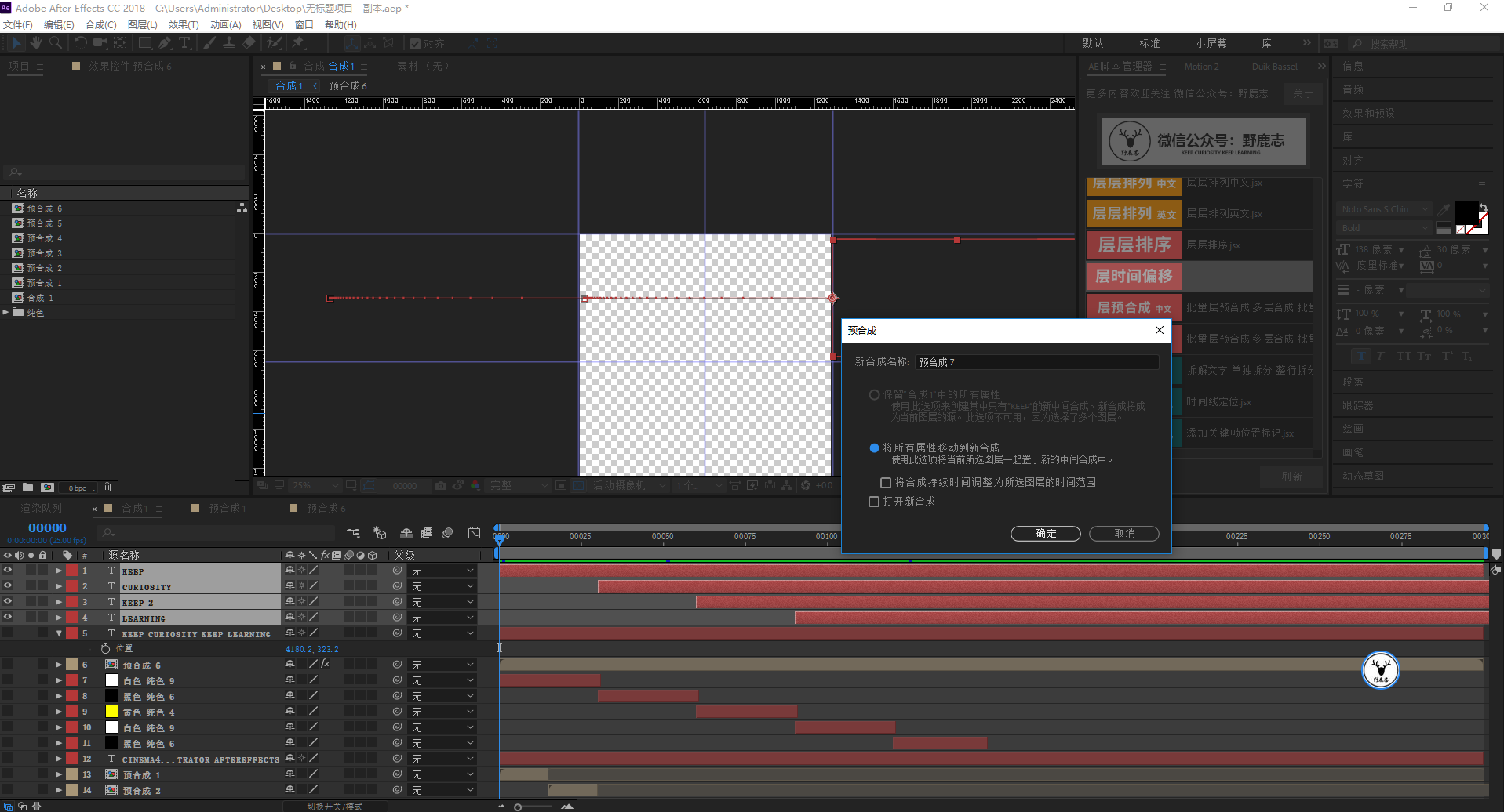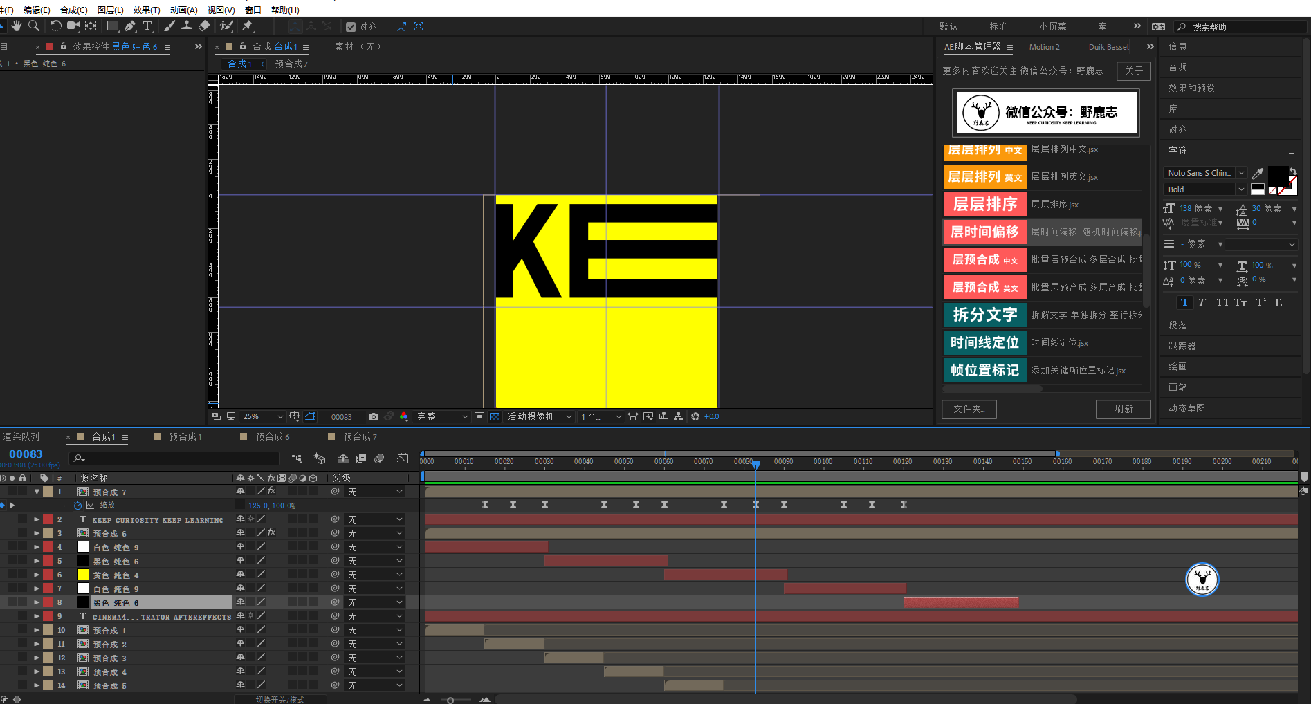 AE也是一个体系很庞大的软件,有着各种预设、脚本、插件,我们在对软件本身的学习有一定的基础以后,要学会善于利用各种脚本或者插件,这样可以大大的提高我们的效率。