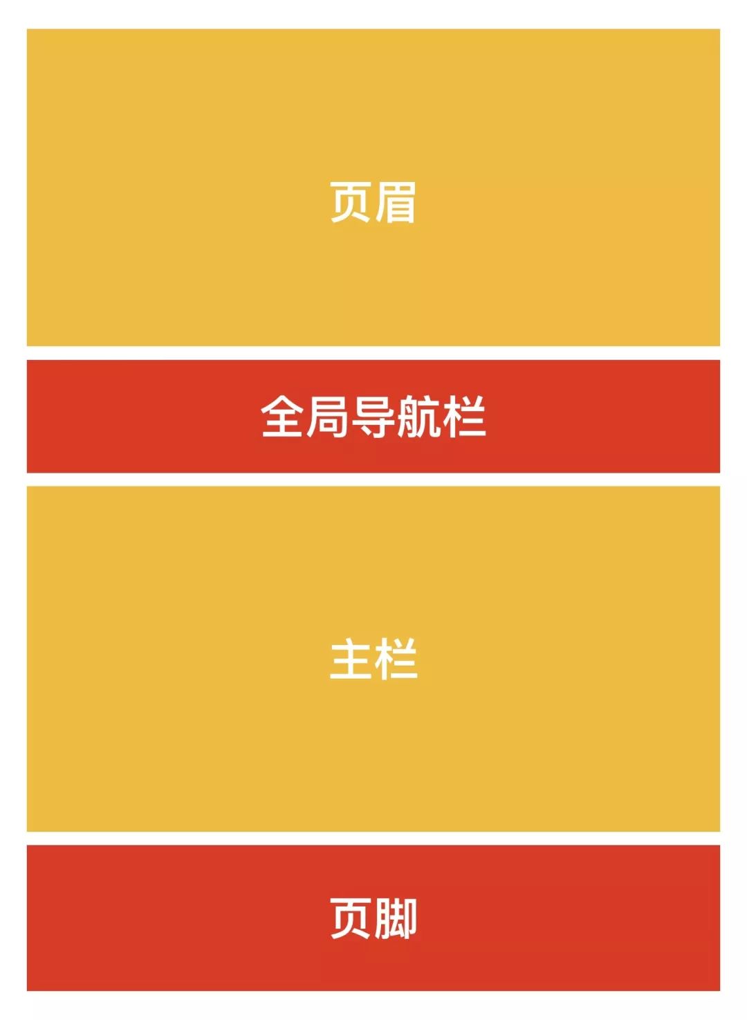 一个网页中,通常包含,页眉、全局导航栏、主栏、页脚,这四个部分组成。我们来看一些,网站案例,加深一下理解。