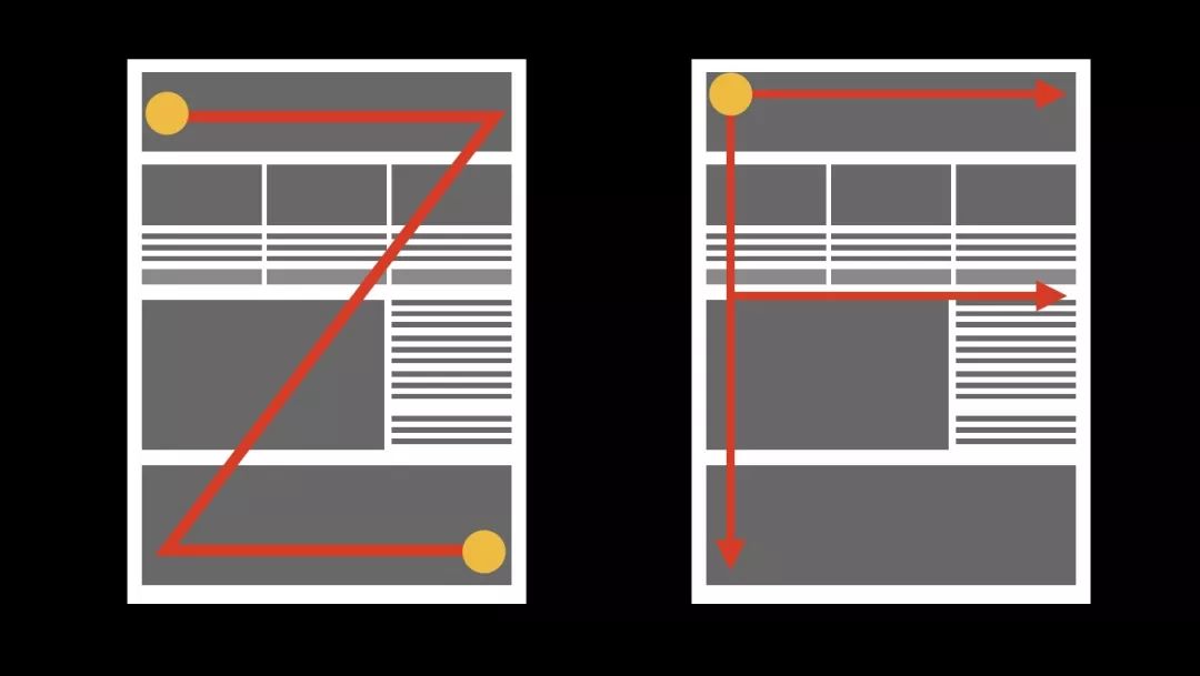 网页的浏览顺序,不同于平面类,它分为Z字形浏览顺序和F型浏览顺序。