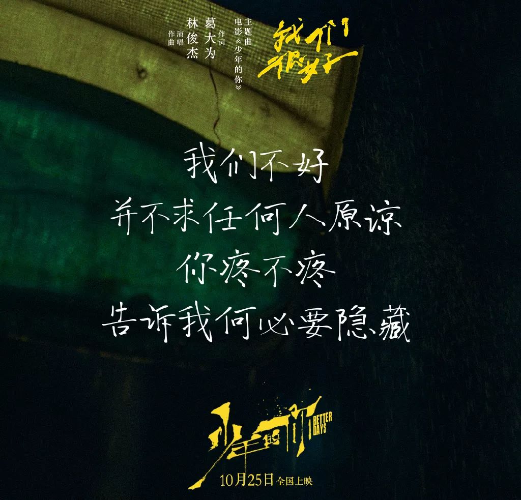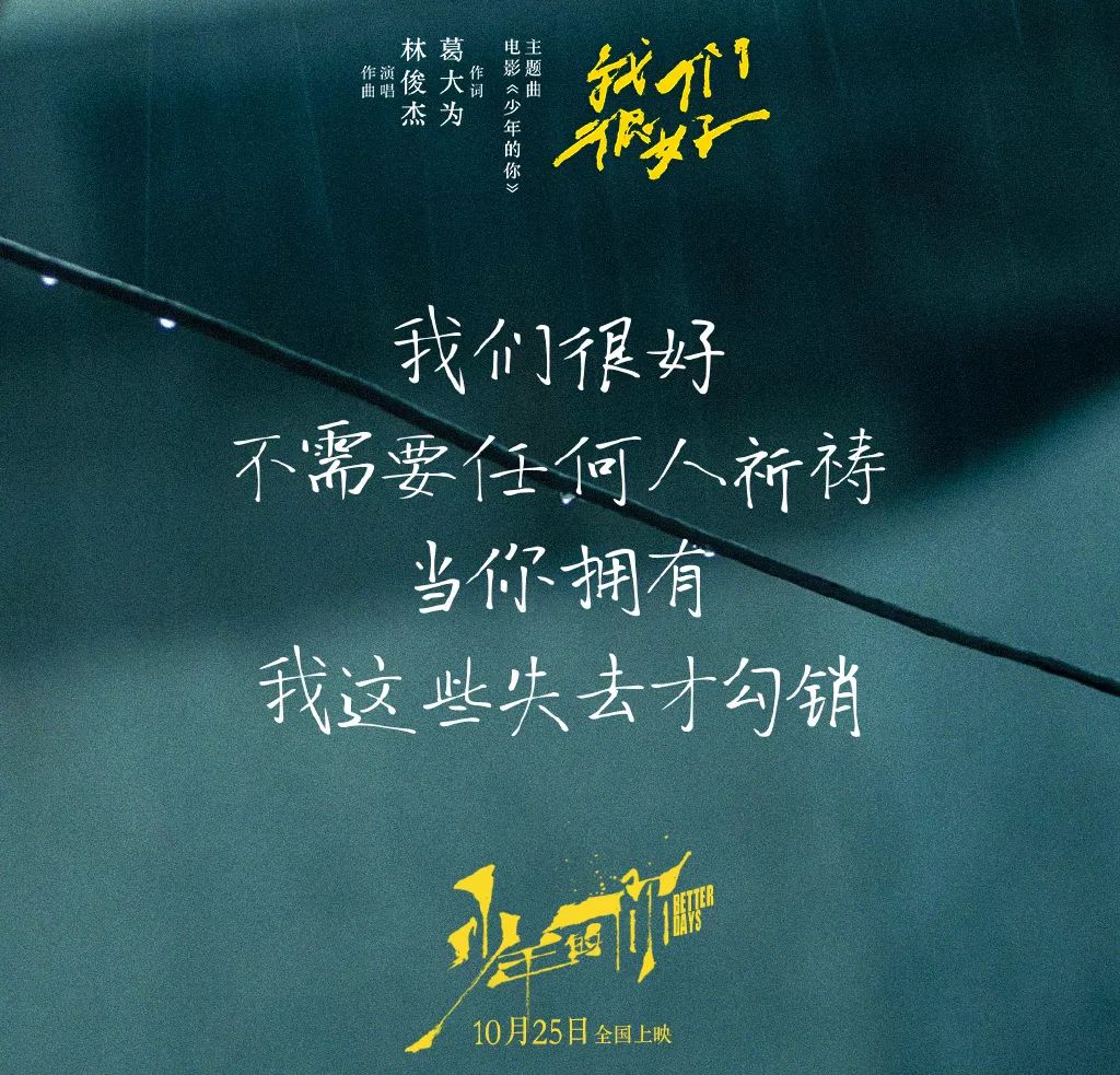 主题曲《我们很好》发布时,也做了一系列歌词图片,虽是简单的手写体,却能通过文字,感受到那故事背后,倾诉出的孤独和无助……