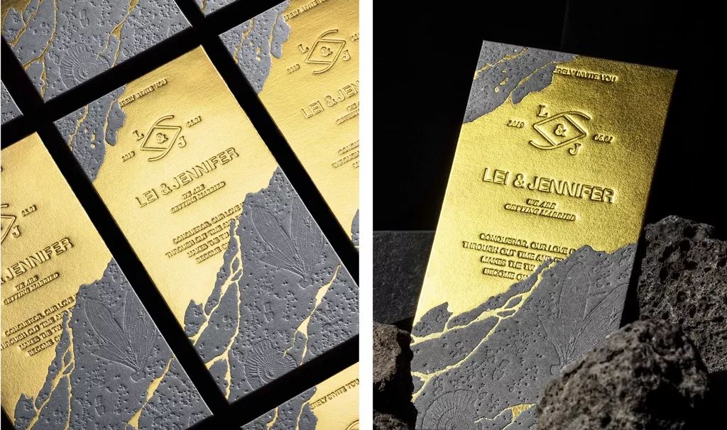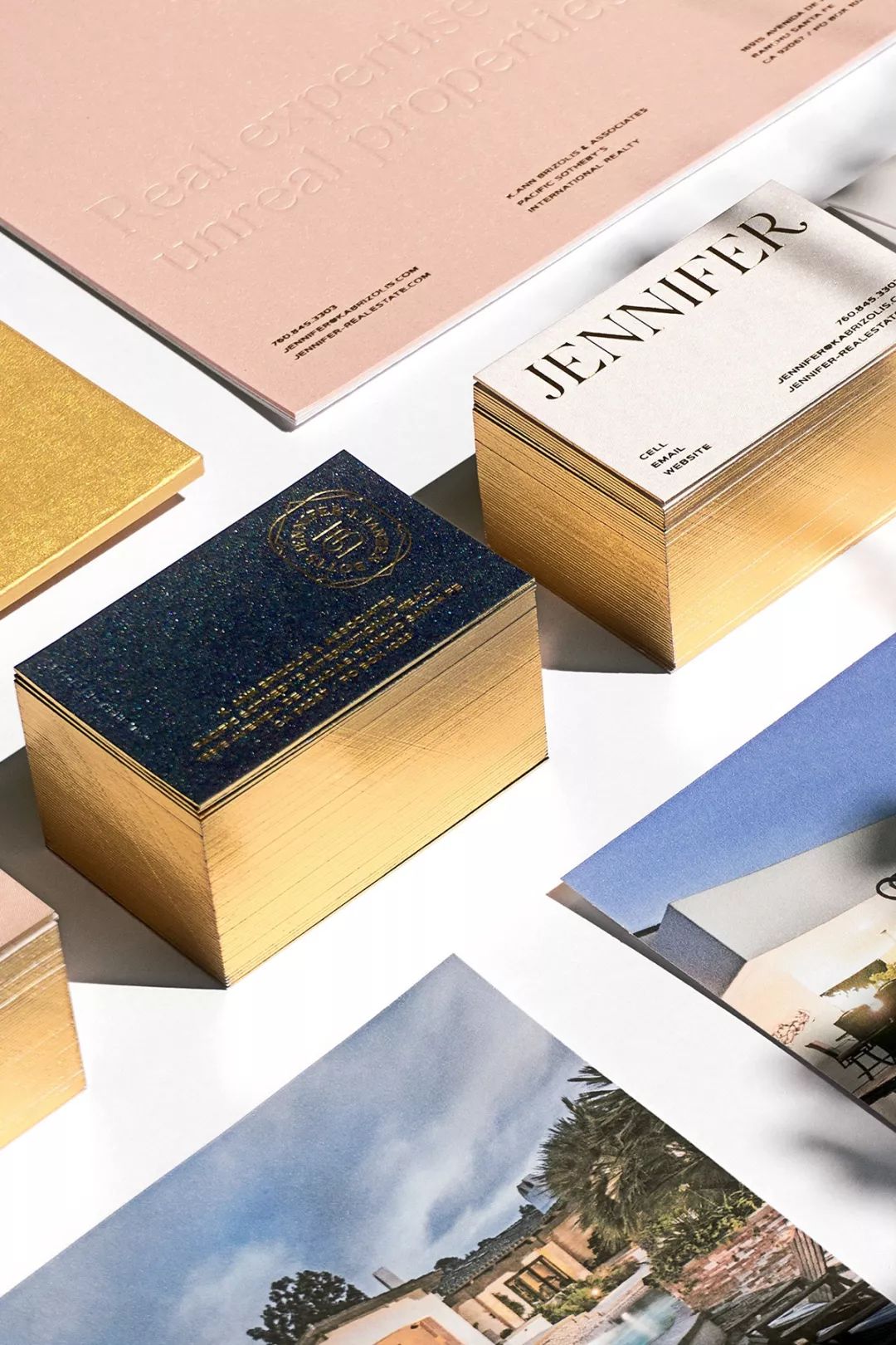 在平面设计中使用金属材料已经成为品牌标识和产品设计的强势潮流。按照规则,此趋势强调基于极简主义的整体设计,因为要让重点落在金属效果本身。我们留意到设计师大多使用土豪金,它传达出奢华、高贵的品味。不过,金属效果也可借由任何颜色的光泽表面来呈现。为了让这种金属效果更具表现力,品牌专家将这种趋势融入诸如名片等品牌标识的实物中去。