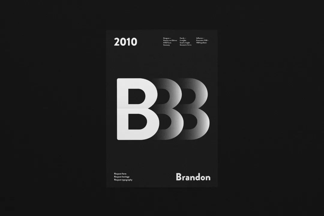 Daniel Barkle 研究了无衬线字体的起源和发展历程之后,设计了一系列 1896-2010 年间的无衬线字体海报。