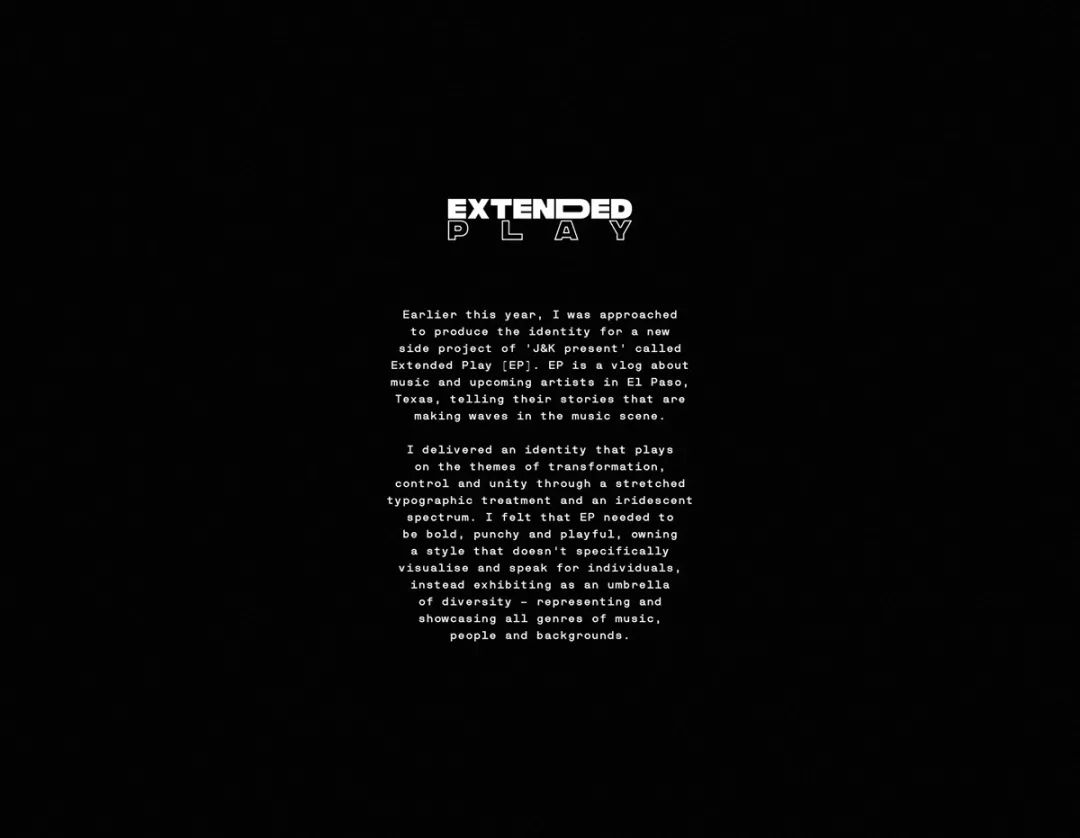 Extended Play (EP) 是一个关于音乐和即将到来的艺术家在音乐现场掀起波澜的盛会。这是 Dan Barkle 为基于音乐的vlog设计的品牌标识的简短案例,包括动画和插曲编辑。