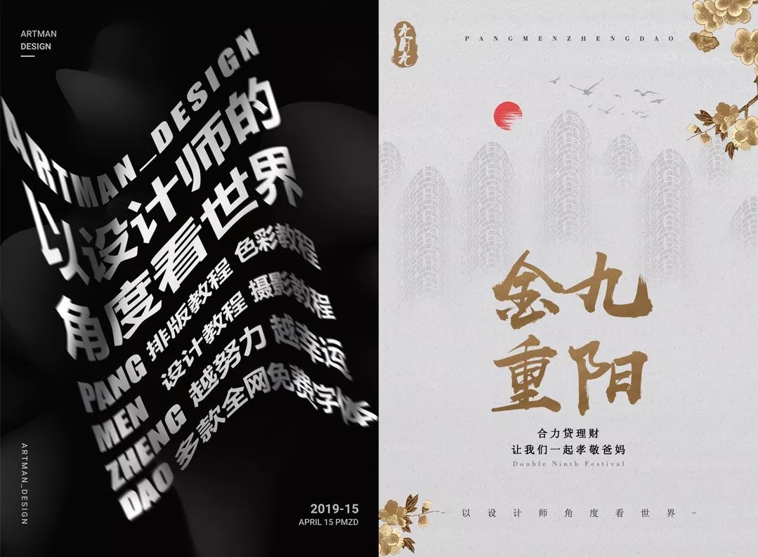 这个海报用刚刚做好的3D绕转文字效果做海报的旋涡背景营造立体空间感颜色搭配黑色紫蓝色点缀黄色字让画面更有活力时尚感。