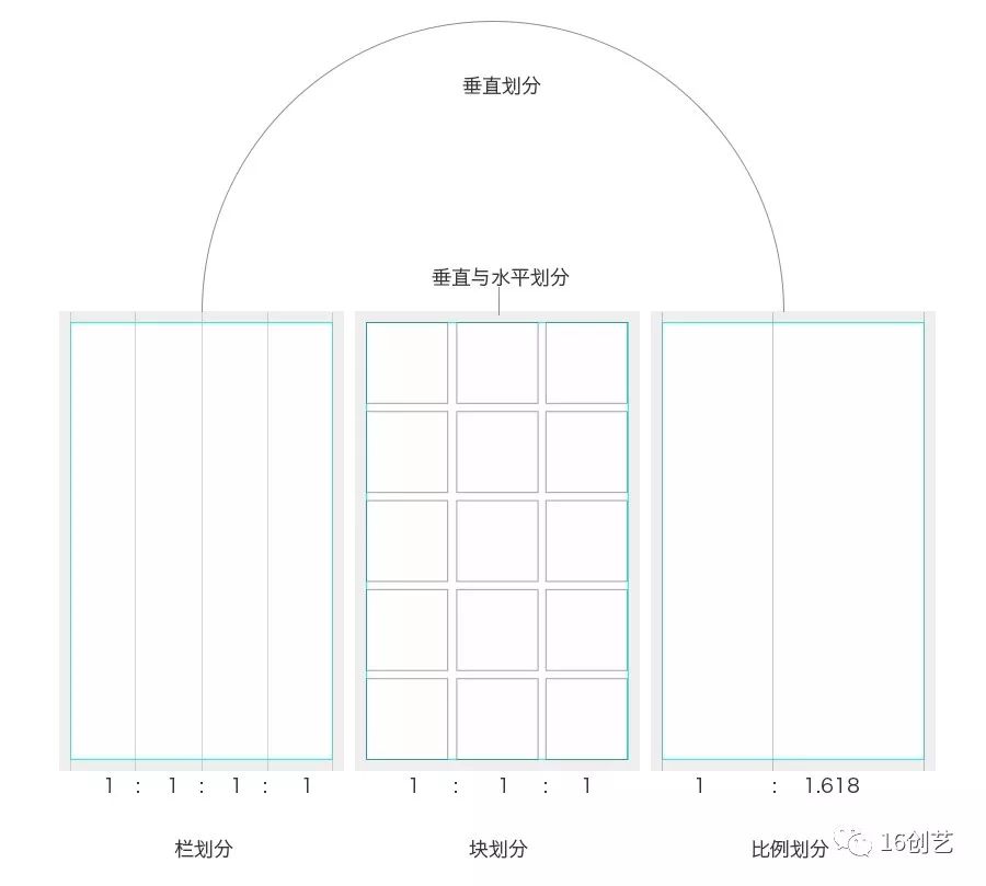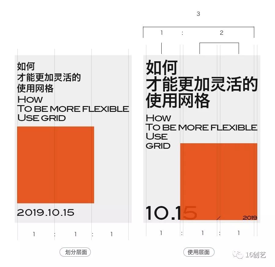 从划分的结构图可以看出,在平均等分的情况下只需要适当的把两个部分进行合并就可以变成不等比划分形式,所以在网格的使用过程中不管是平均等分还是依据一定的数值进行具体的划分都存在一种比例关系,而我们所说的比例逻辑关系正是在使用层面所要遵循的网格变化规律。