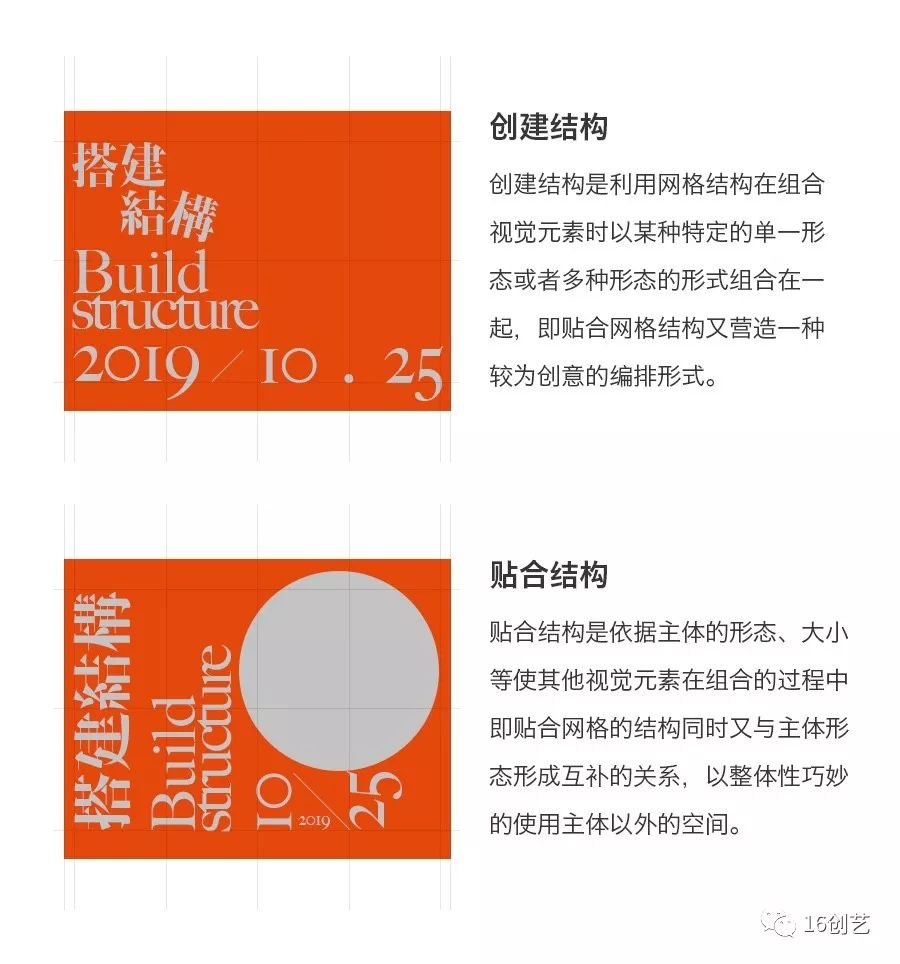 搭建结构是以局部的视觉元素组合带动整体的视觉表现,是在贴合网格的基础上以隐藏的空间结构使留白与看得见的视觉元素形成一定的关系,即产生理性层面的表现,也能表现出感性层面的情感和情绪,以严谨和稳定的特征有序的表现出不同的视觉元素,实现信息的传递和画面美观的表现,就像盖房子一样一步一步的完成版面中所有视觉元素的组合编排,通常会依据某种造型或者图形的形态作为表现。