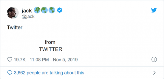 对此,Twitter CEO Jack Dorsey 似乎在嘲笑这个所谓的重新设计,他发了一条意味深长的推文--“来TWITTER(公司)的Twitter(应用)”。意图是讽刺Facebook试图强调自己母公司的做法。
